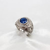 A large and weighty silver college ring set with a blue stone and embossed with "LONDON UNIVERSITY".