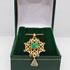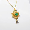 A Floral Style Pendant In Yellow Metal Set With An Rich Green Oval Emerald, Diamonds And Slice Diamond.