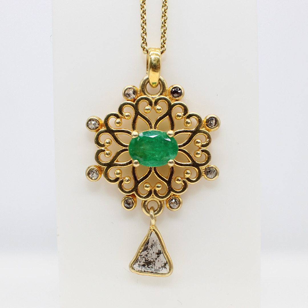 5031339. EMERALD & DIAMOND PENDANT NECKLACE.
