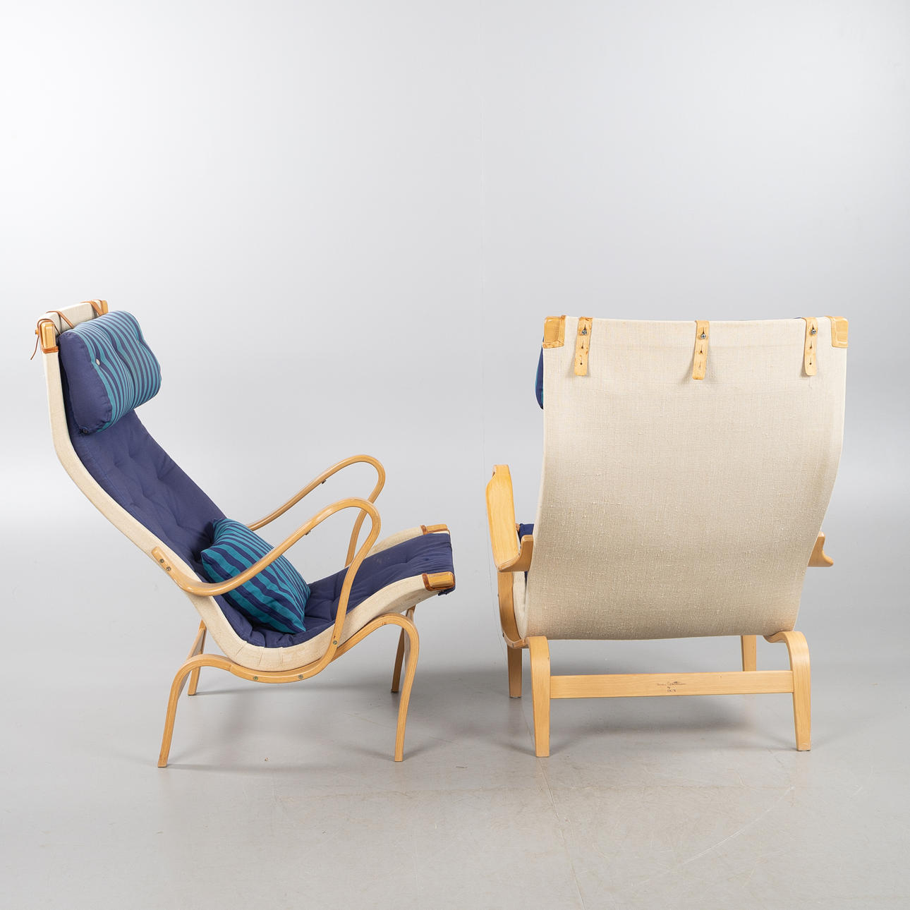 BRUNO MATHSSON. Easy chairs and footstool, "Pernilla", beech.