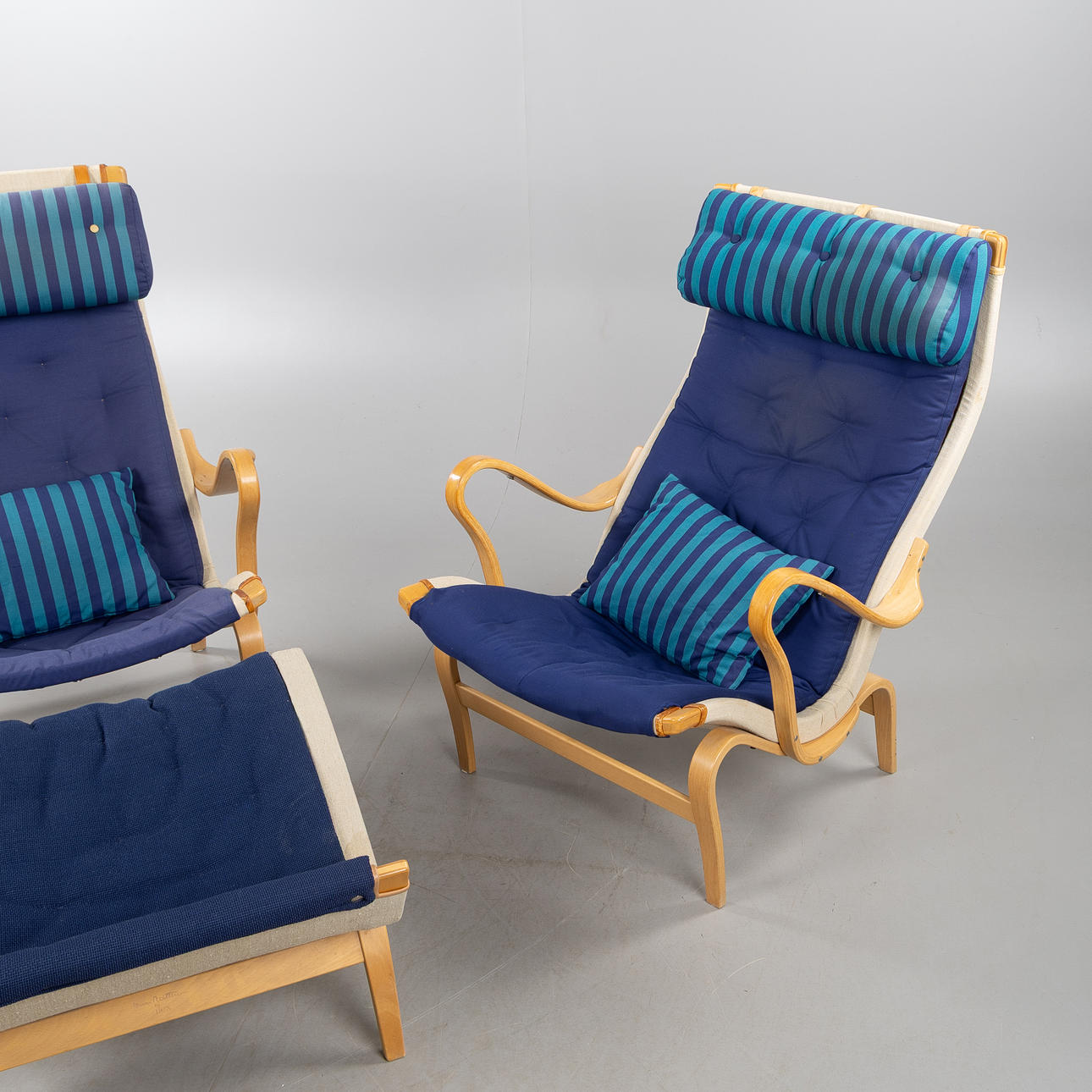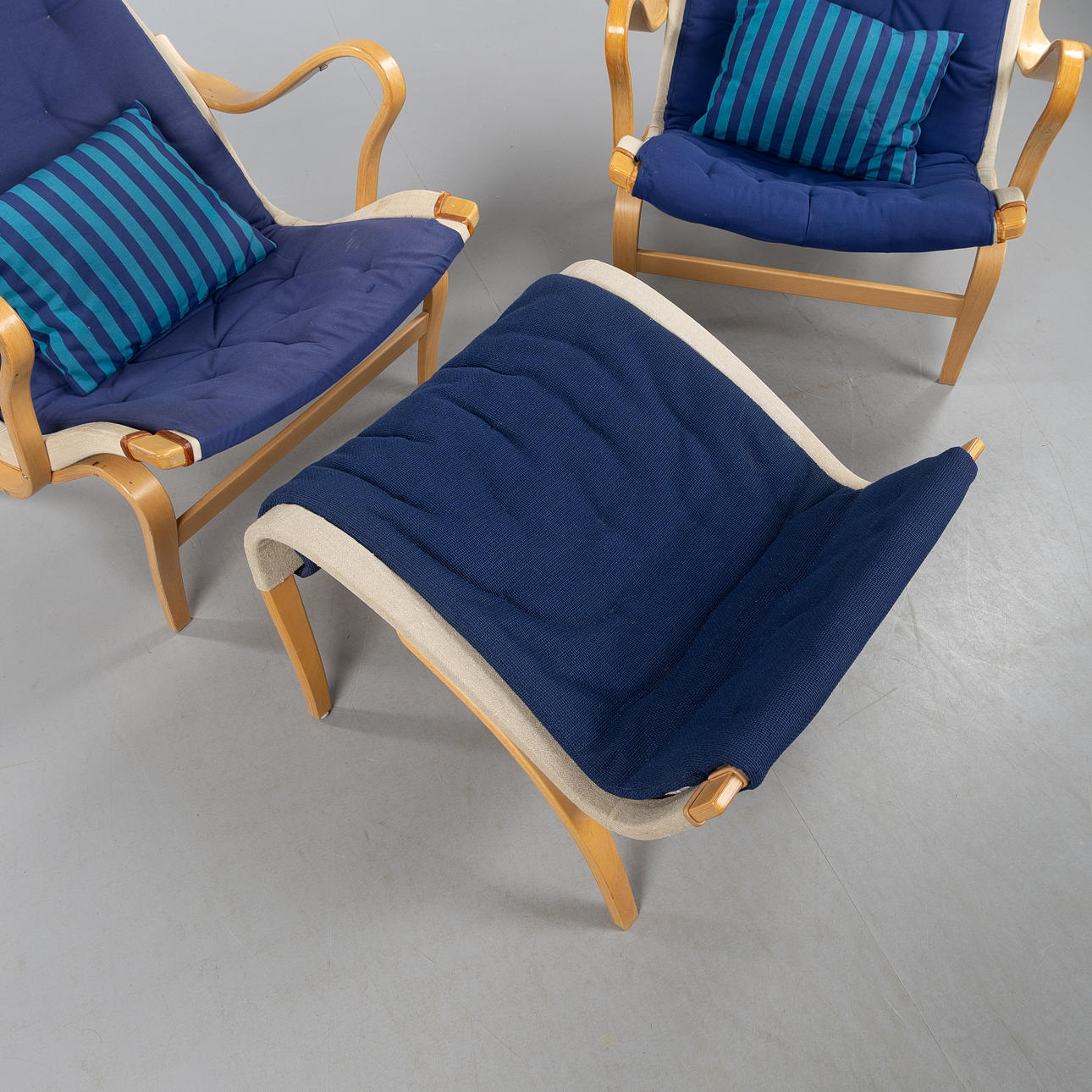 5031346. BRUNO MATHSSON. Easy chairs and footstool, "Pernilla", beech.