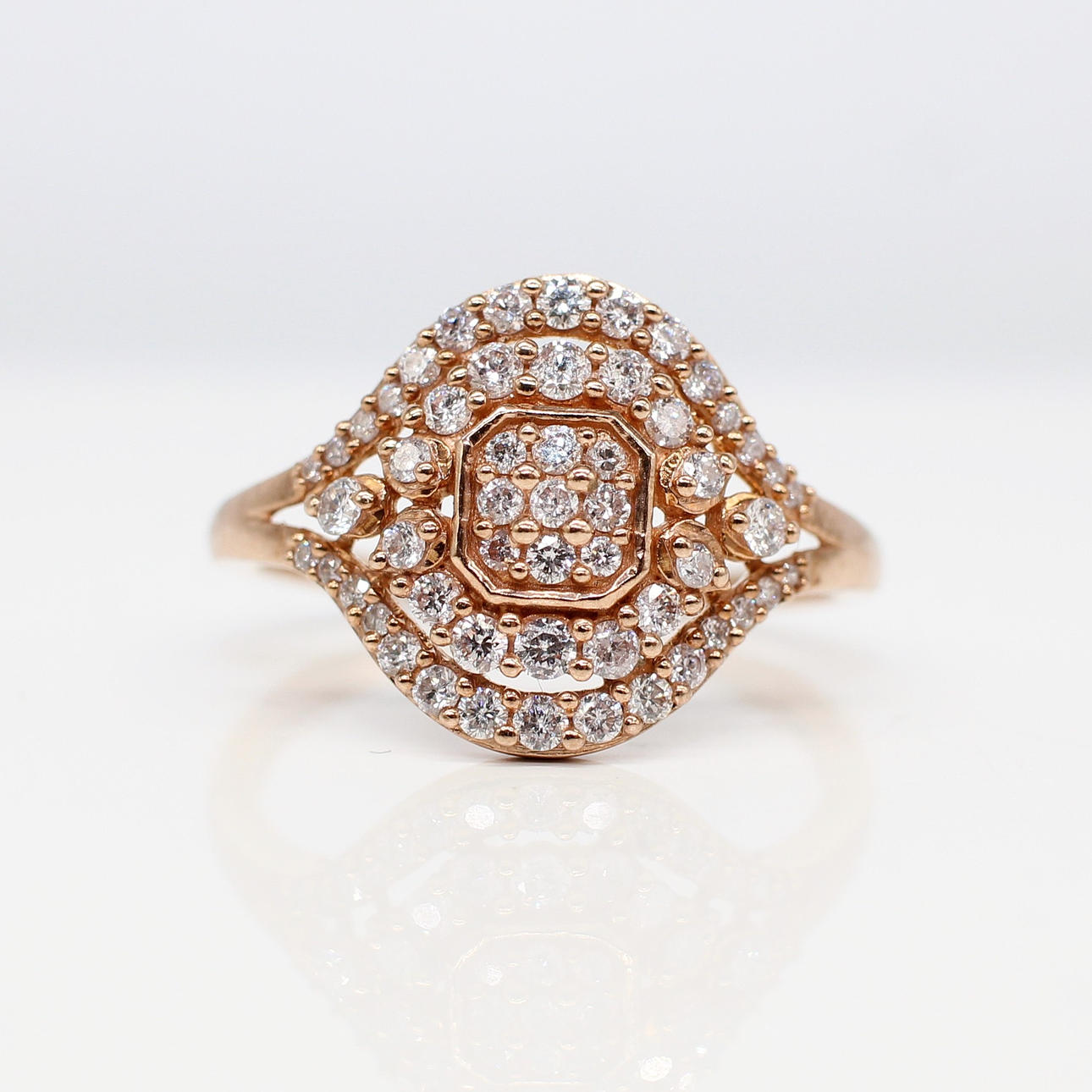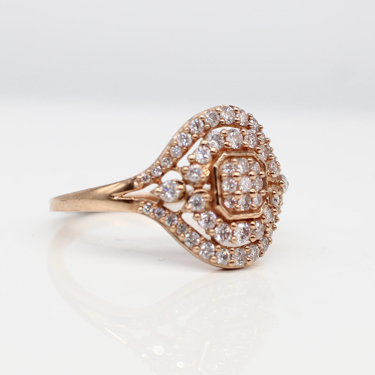 A 9ct Rose Gold (Hallmarked) Round Brilliant Cut Diamond Cluster Ring.