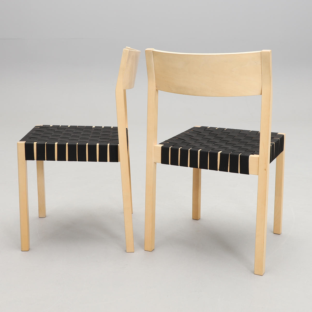 Birch. Seat of black webbing. Width 49, depth 50, back height 82, seat height 45 cm.