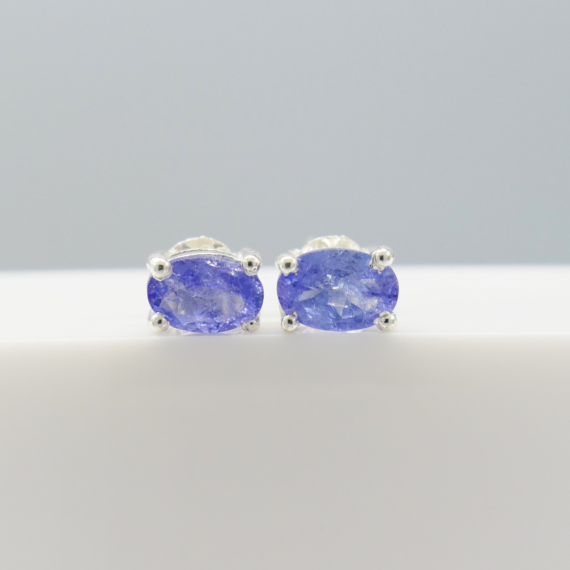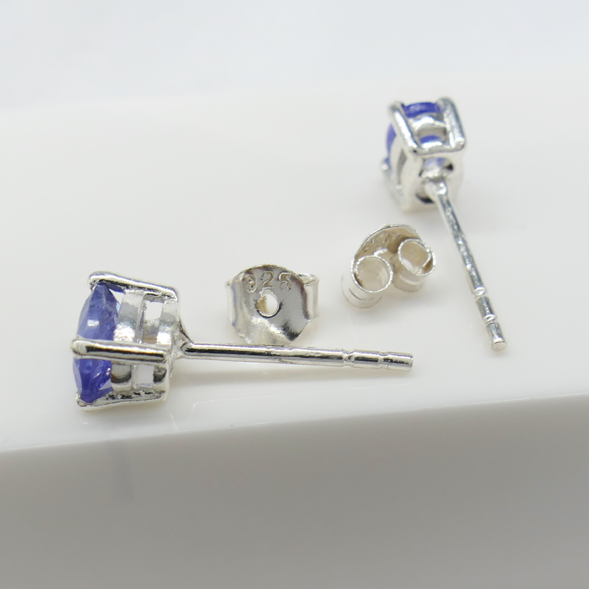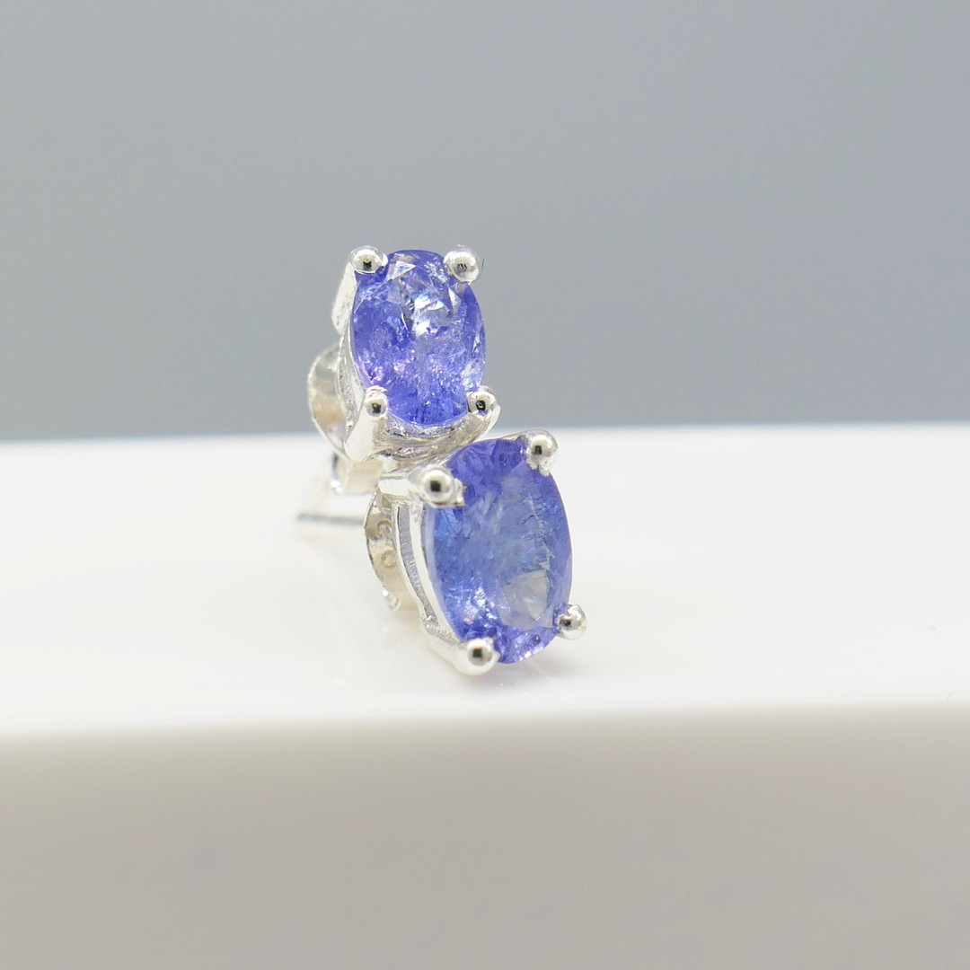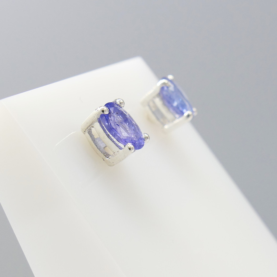 5031627. NATURAL TANZANITE silver ear studs.