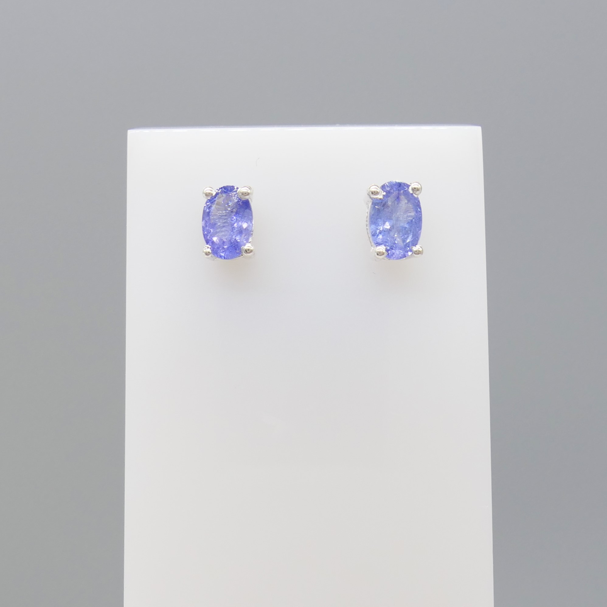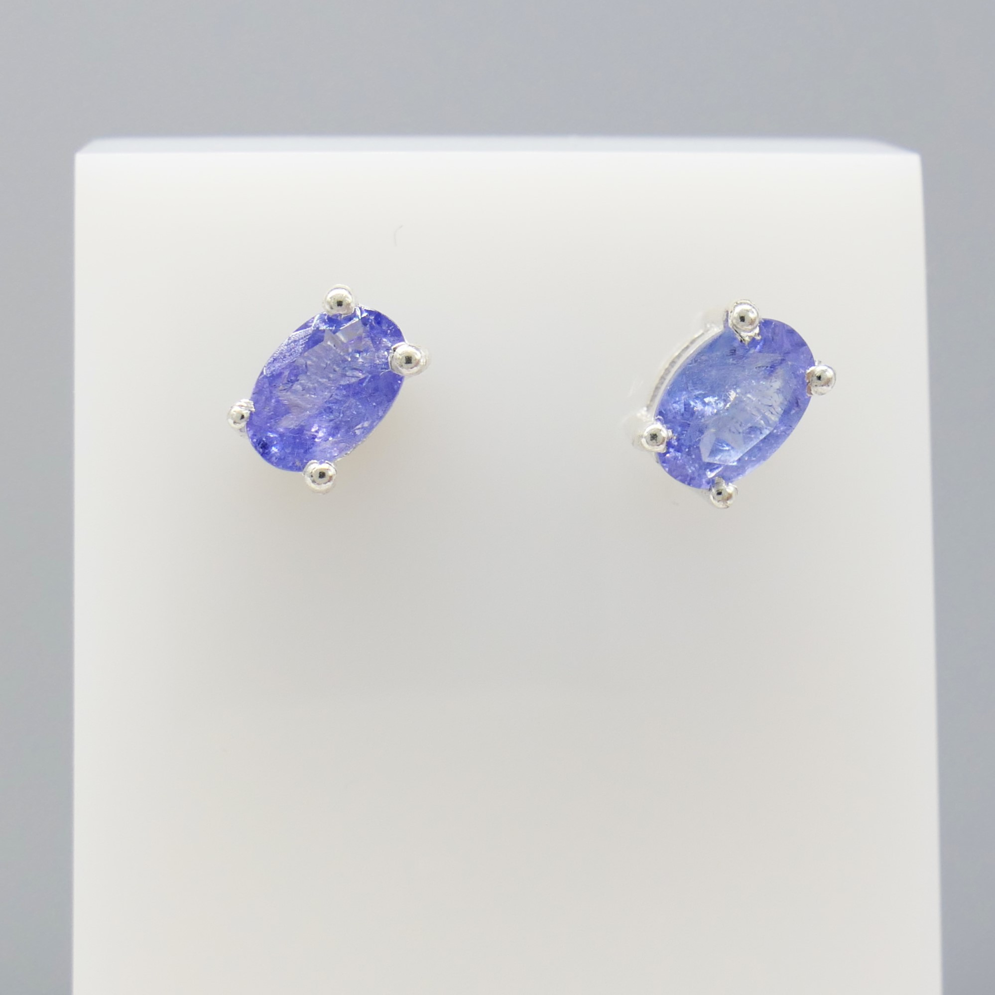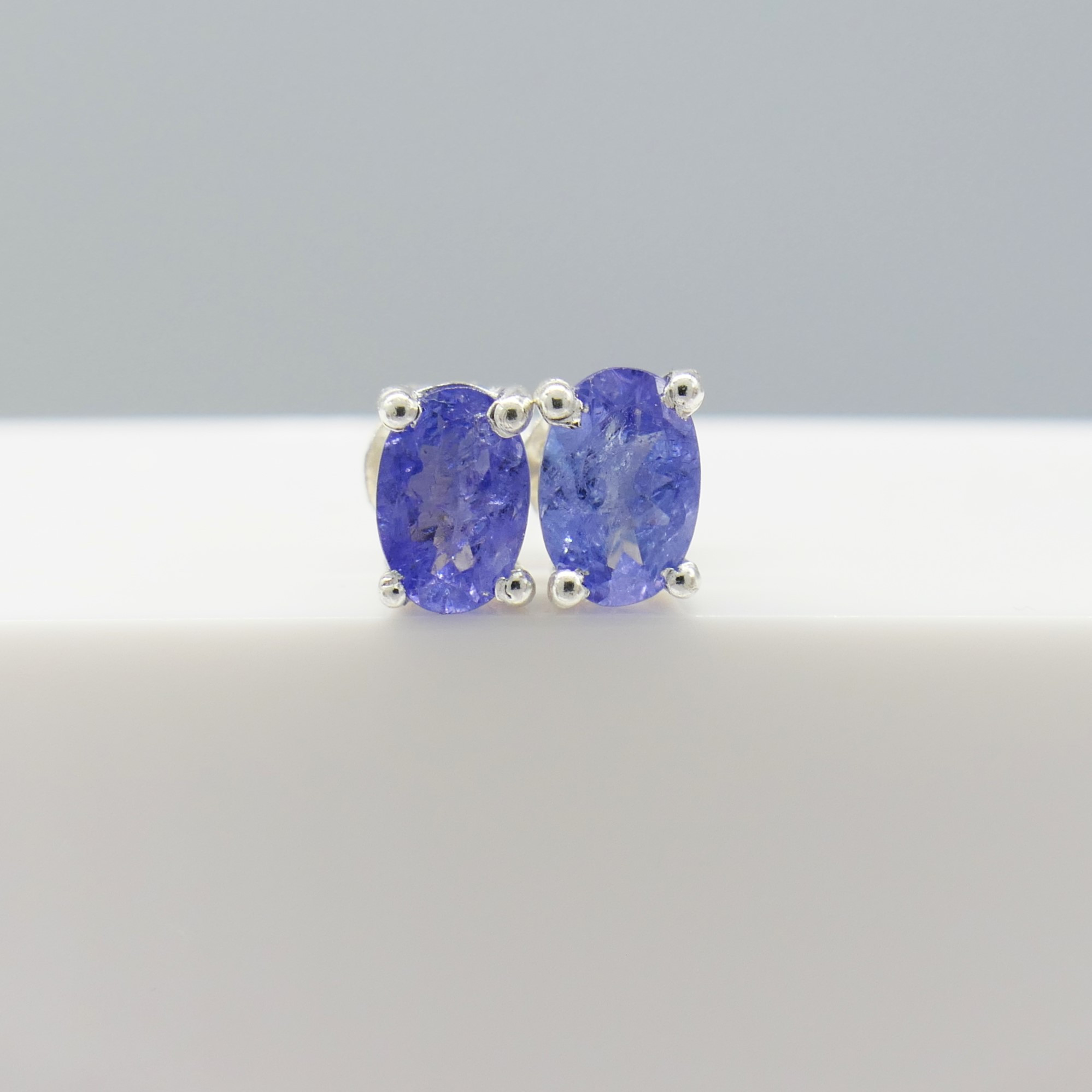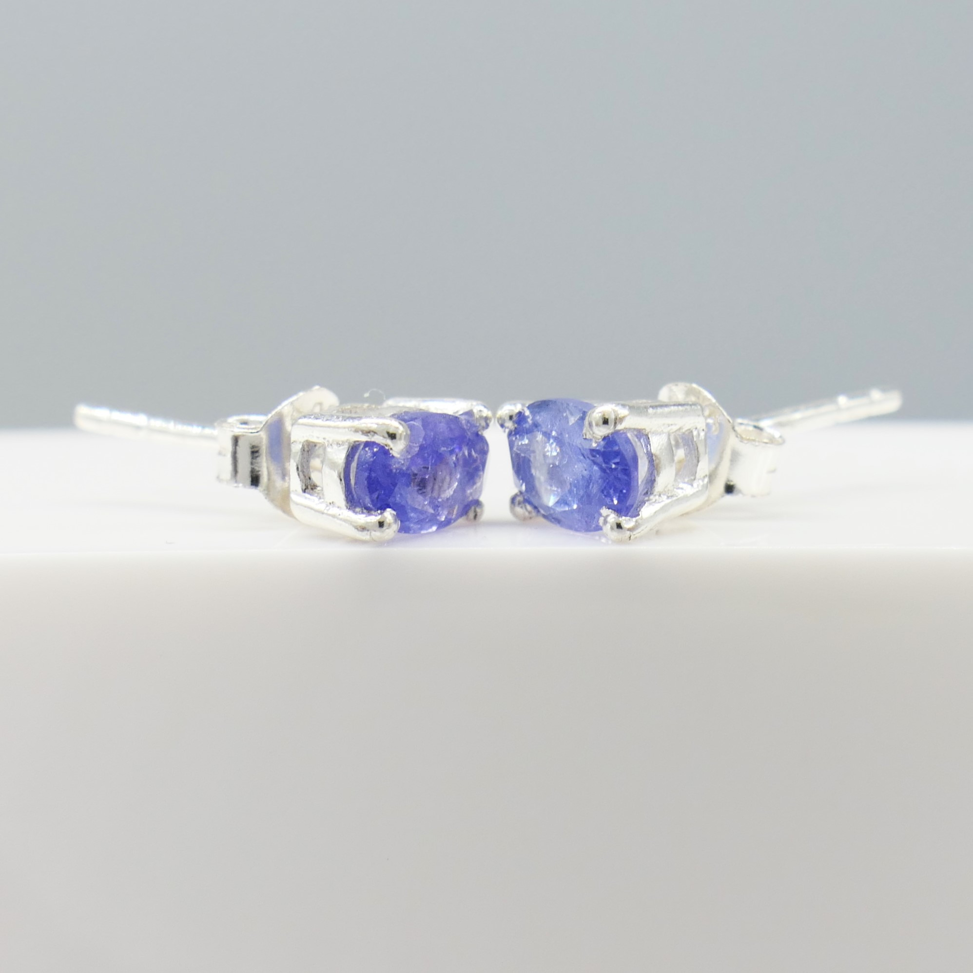 5031627. NATURAL TANZANITE silver ear studs.