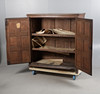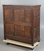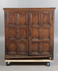 The rectangular top above two panelled doors revealing two shelves, 125cm height, 124cm width, 49cm depth.