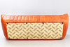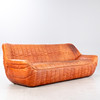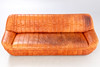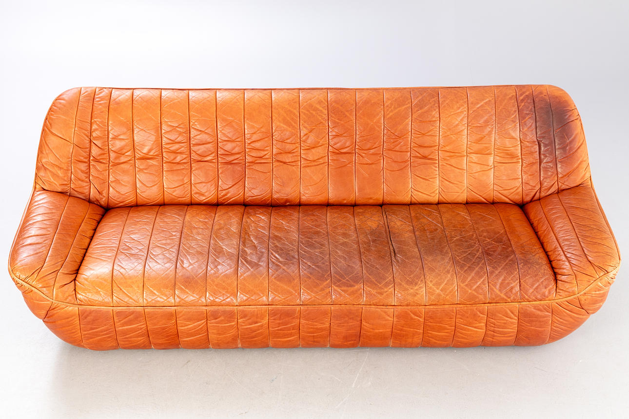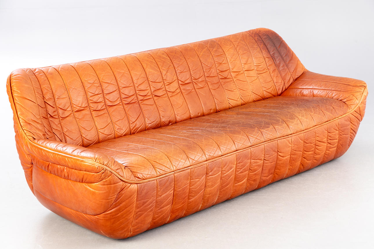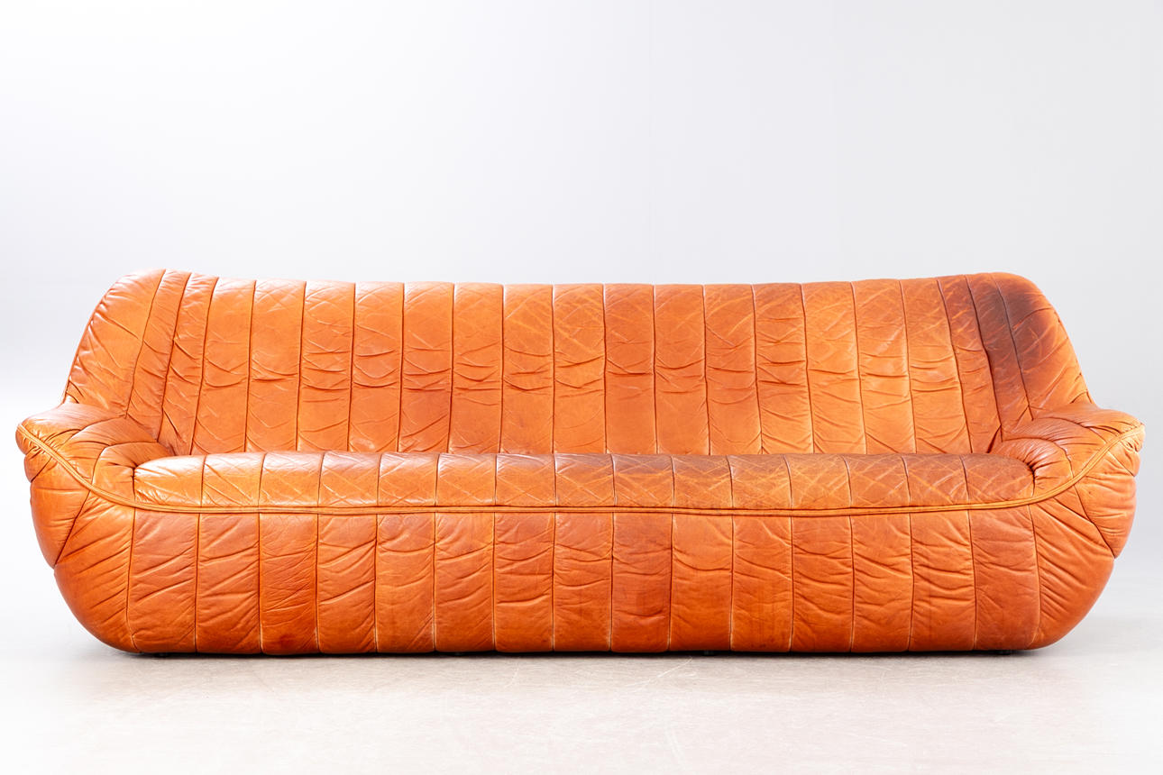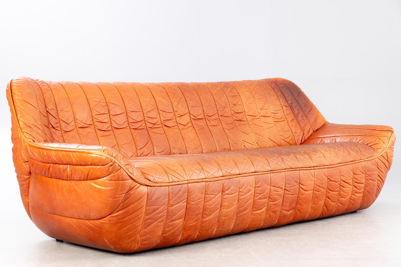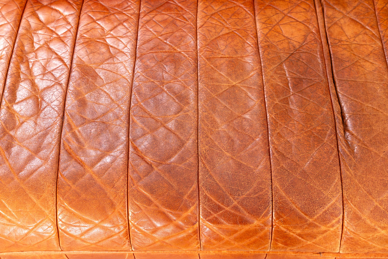 Fully upholstered in cognac-coloured, quilted leather. approx. W. 220 cm x D. 72 cm.