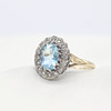 A 9ct Vintage Style Yellow And White Gold (Hallmarked) Ring Set With An Oval Blue Topaz And Surrounded By A Halo Of Round Brilliant Cut Diamonds