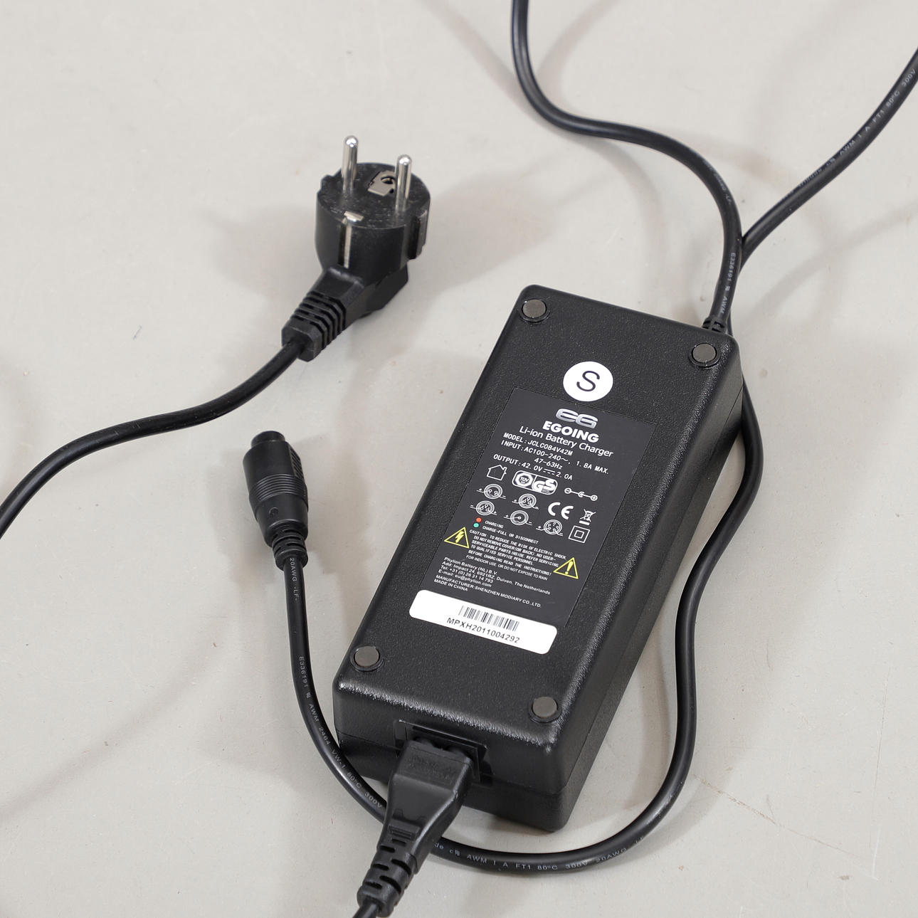 Wear from use. Scuff marks, dirt. Bicycle starts and battery and charger light up at the time of cataloging. No functional guarantee is provided.