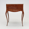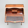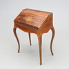 Wear, pieces detached/missing from decorative molding, scuffs and scratches. Metal inkwell on writing flap loose.