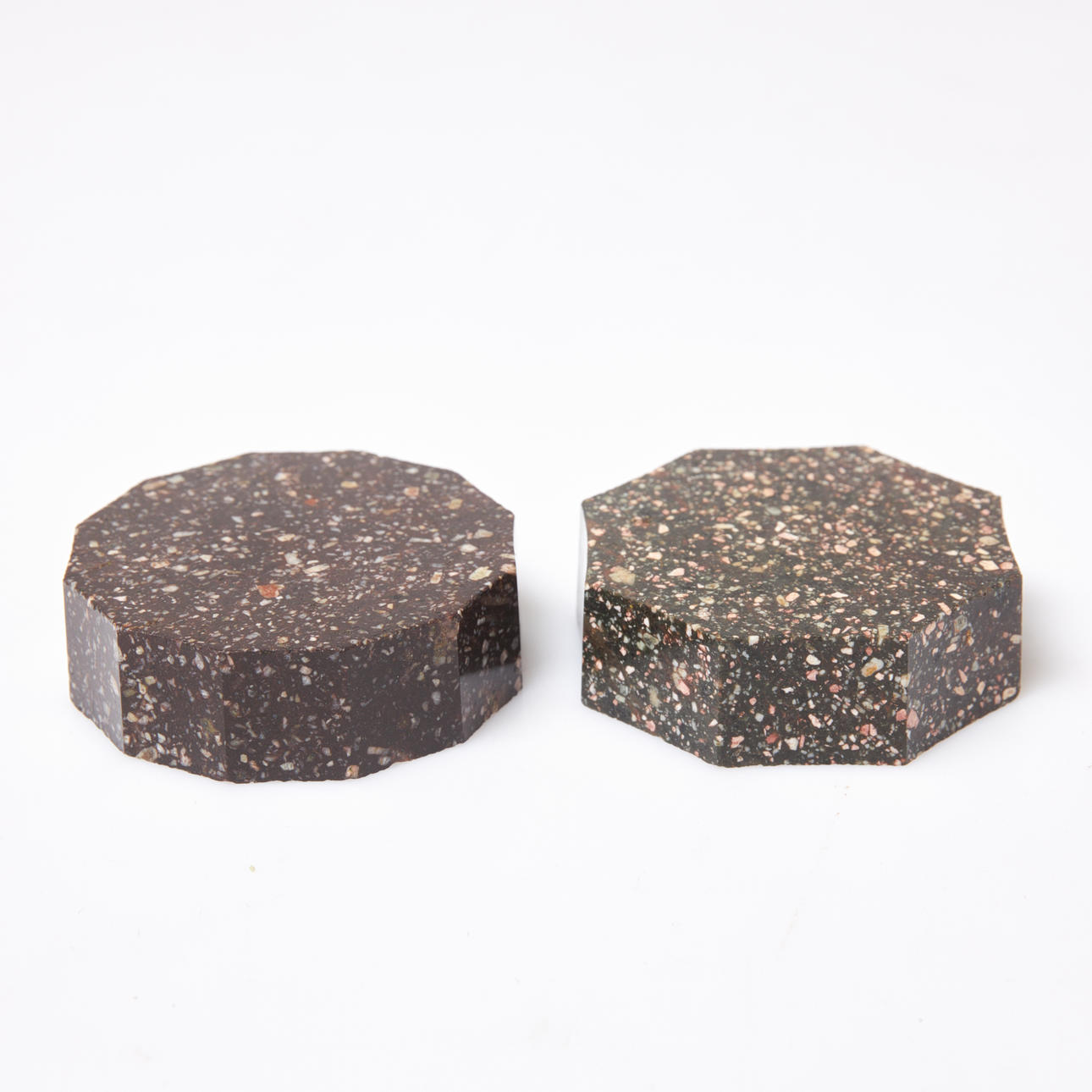 One with twelve sides from the 19th century, the one with eight sides in later production from the 20th century. Diameter approx. 6 cm.