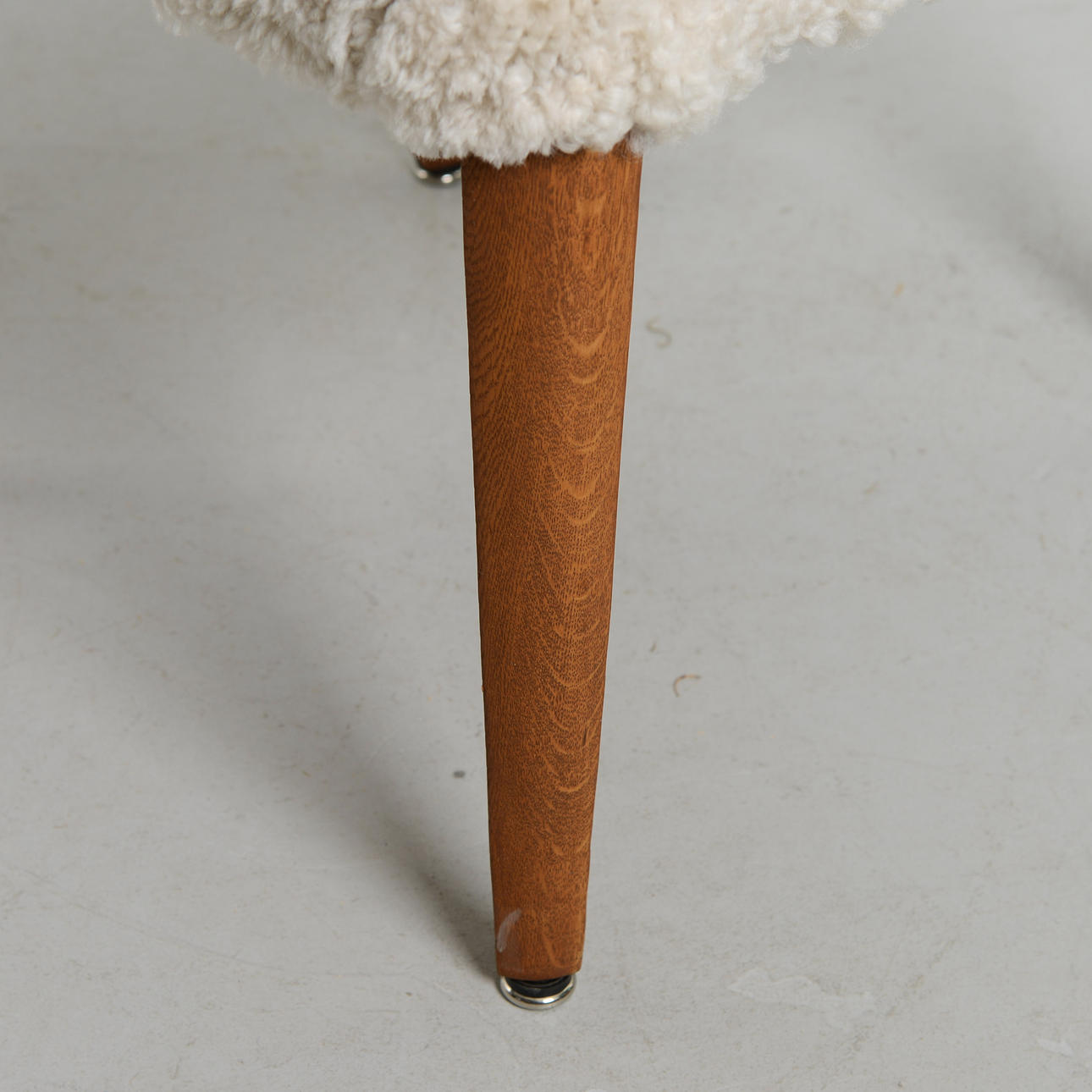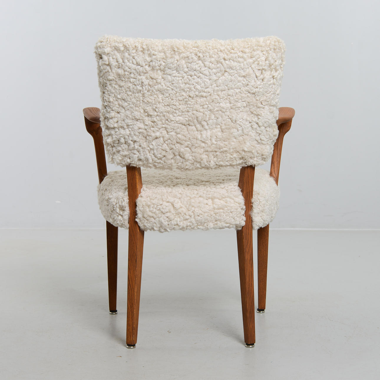 Recently reupholstered in sheepskin. Height 90 cm. Seat height 45 cm. Width 66 cm.