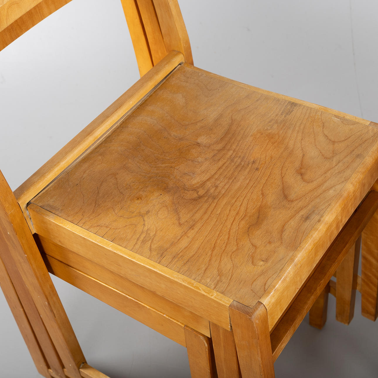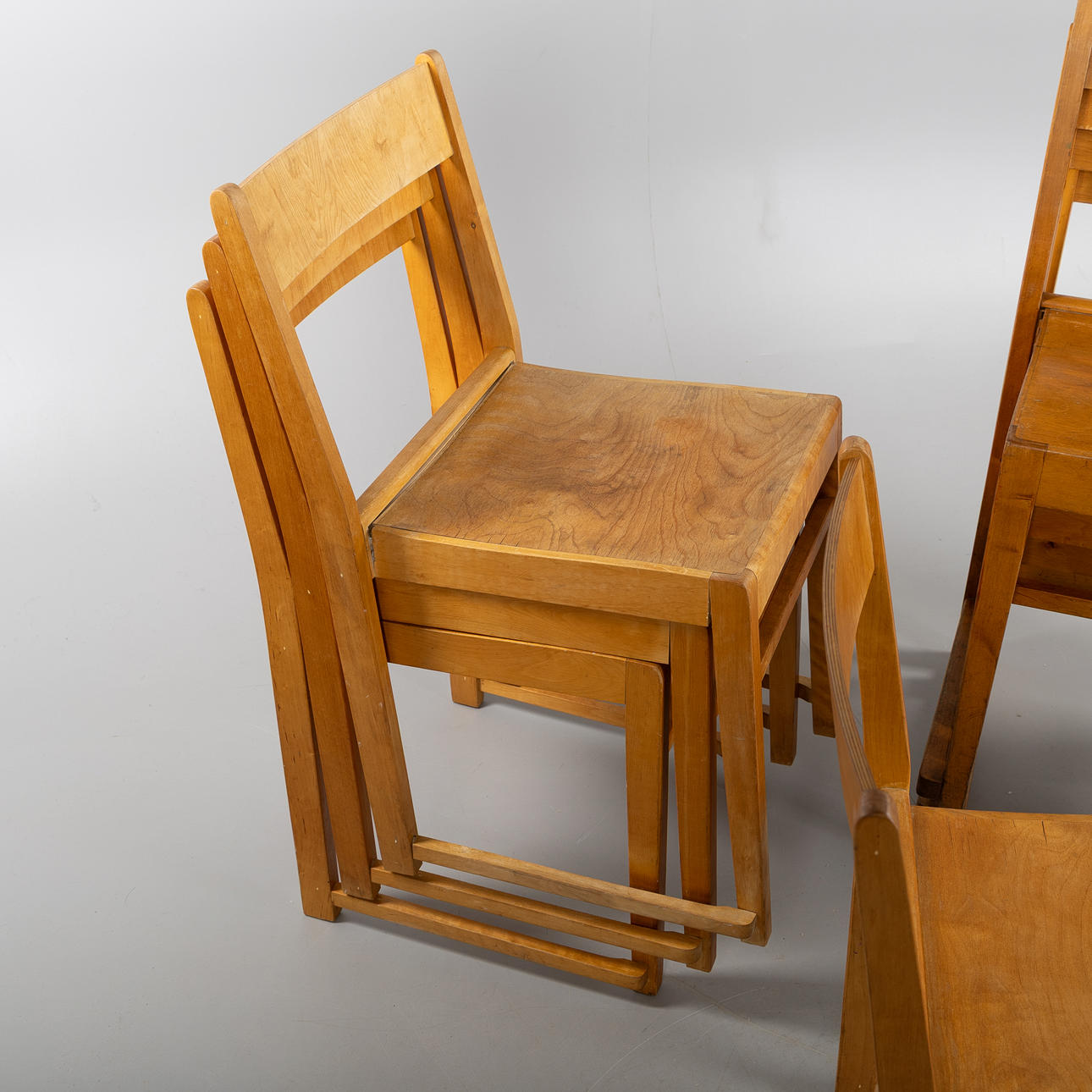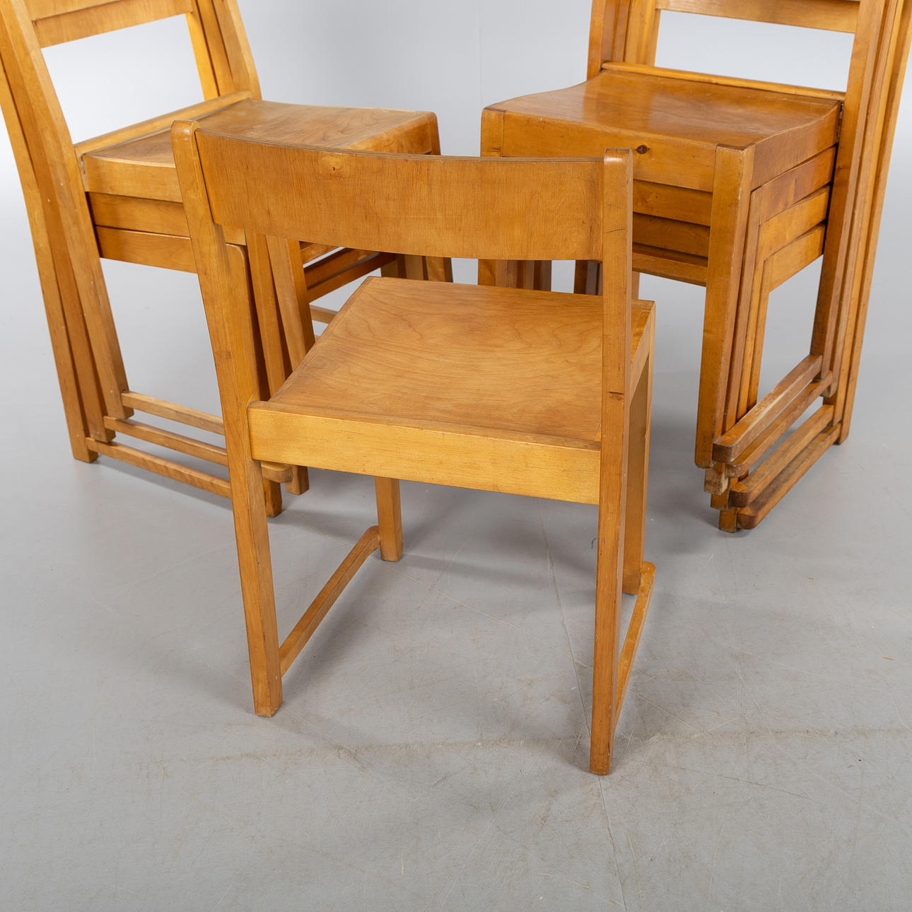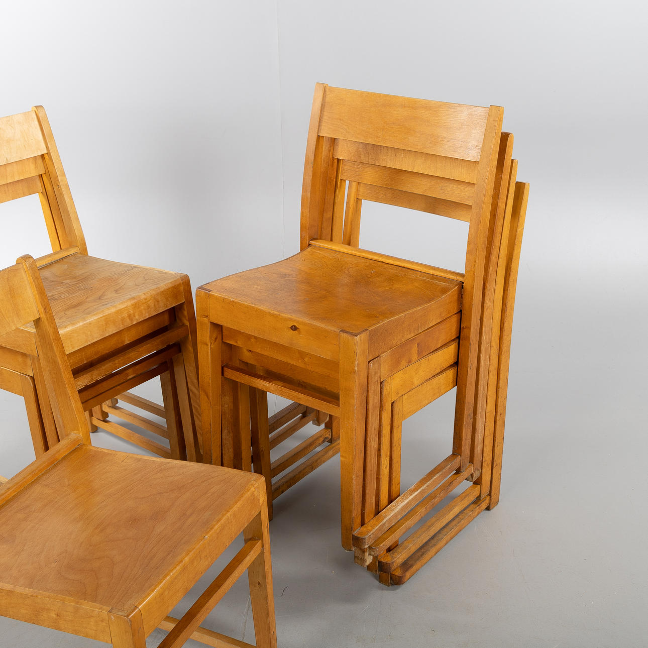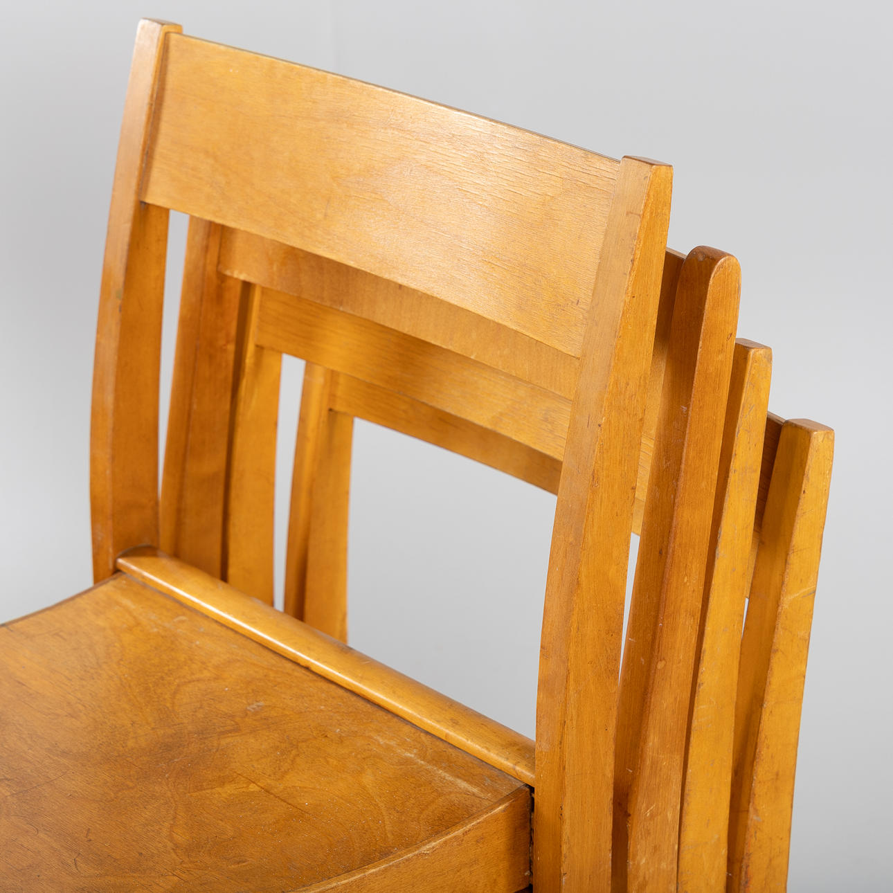 Stackable, height approx. 85, width 46, seat height 45 cm.