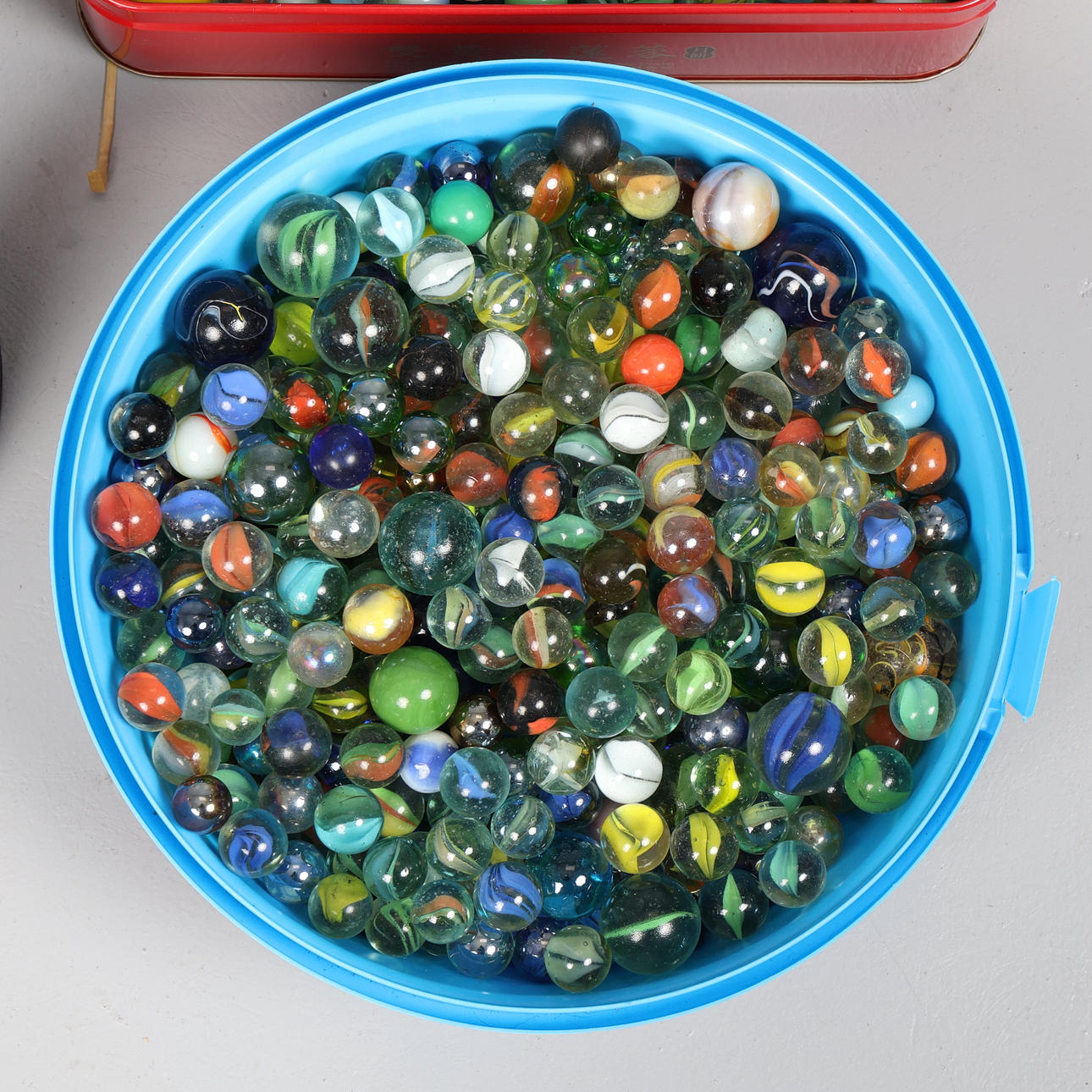 Of various styles, colours, shapes and sizes, housed in 4 tubs, H.9cm x Dia.23.5cm approx.