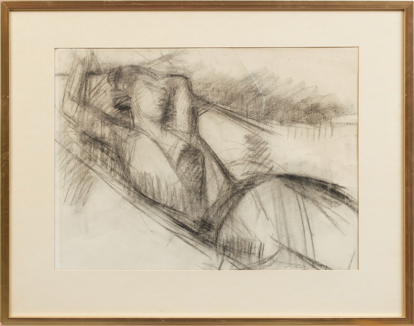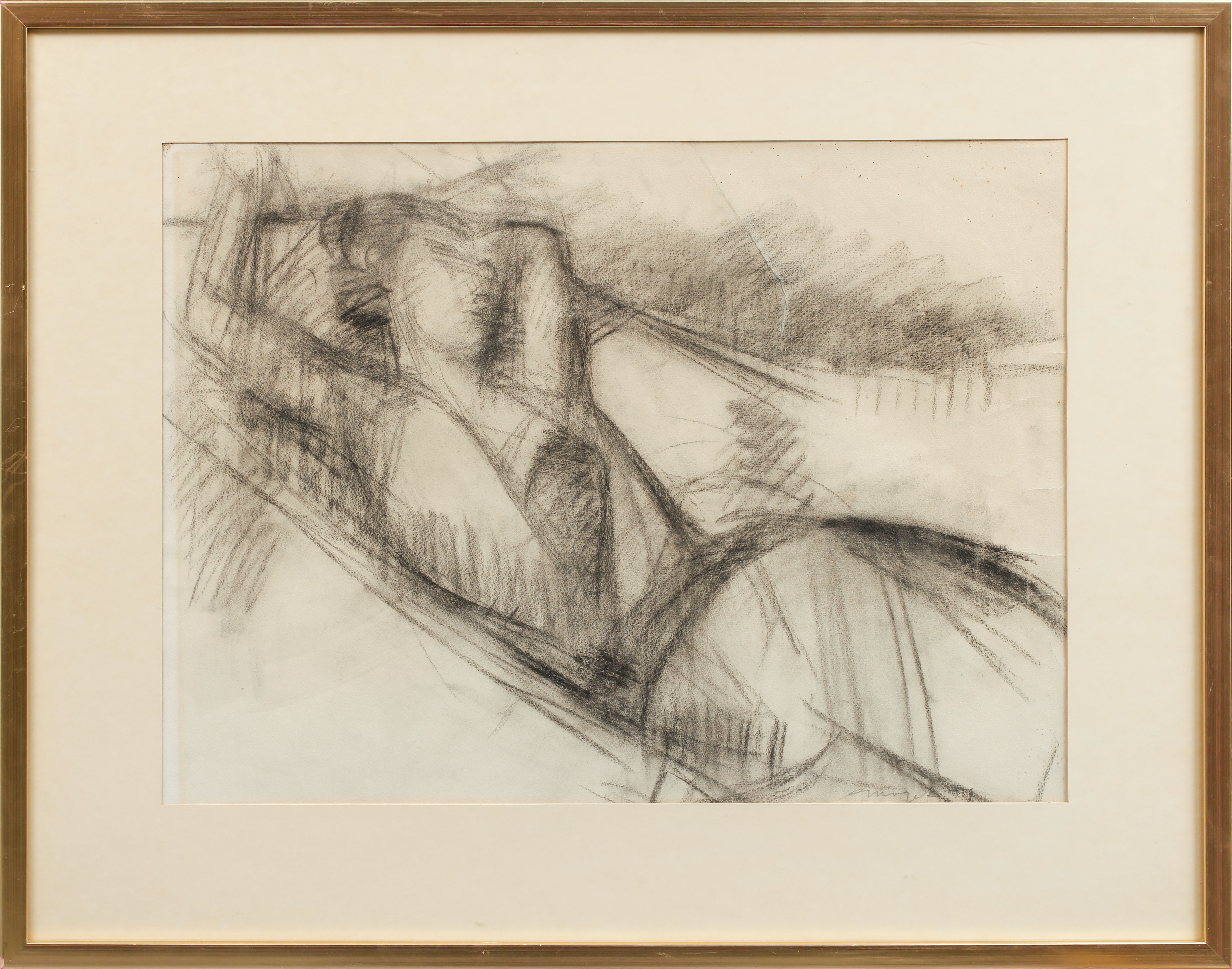 5032623. PIET MOGET. Model, charcoal drawing, signed.