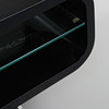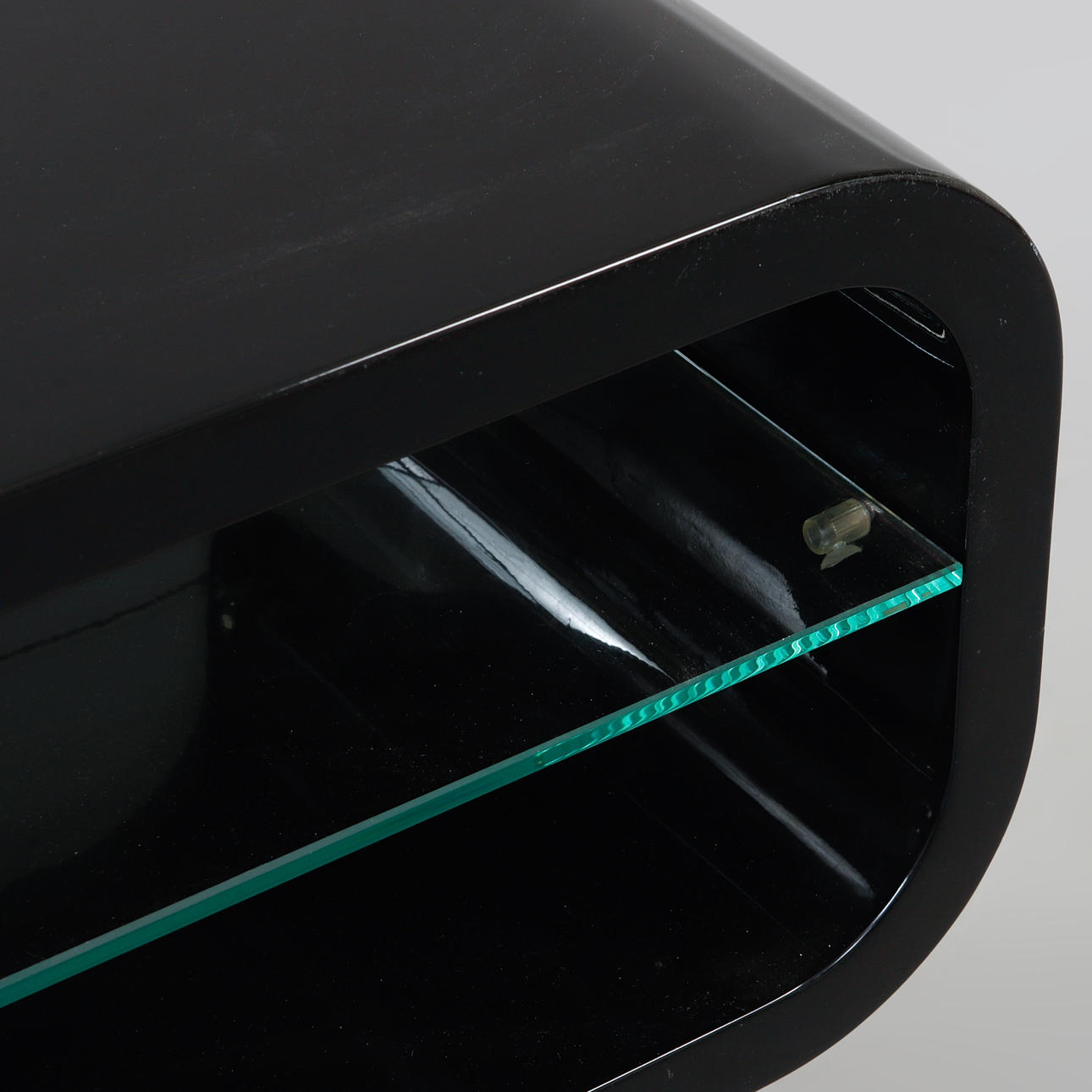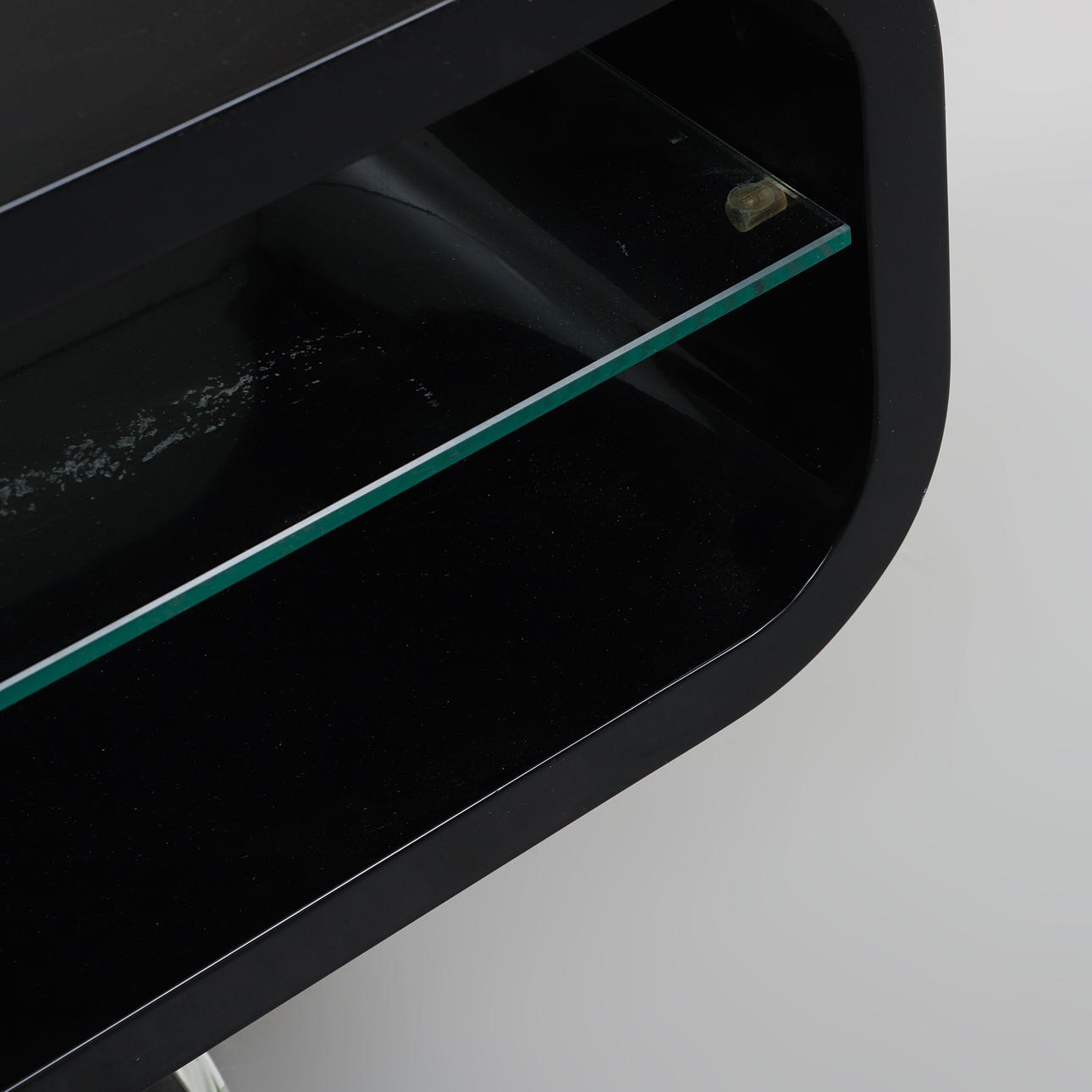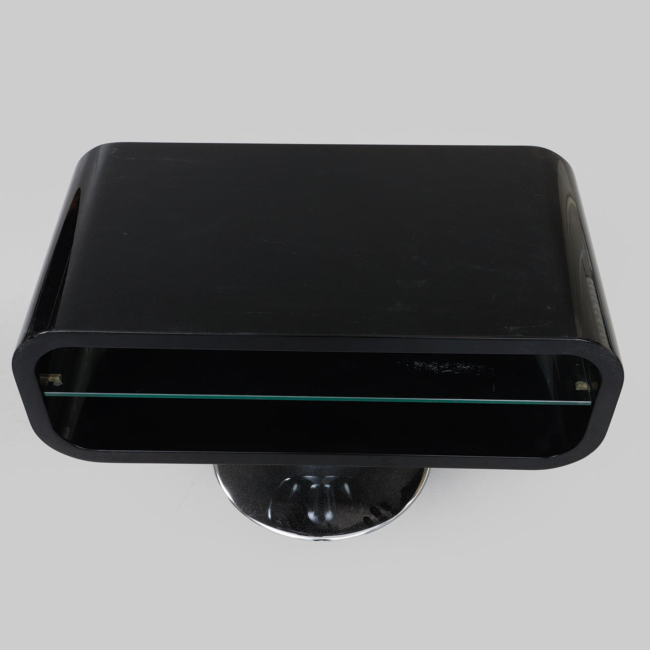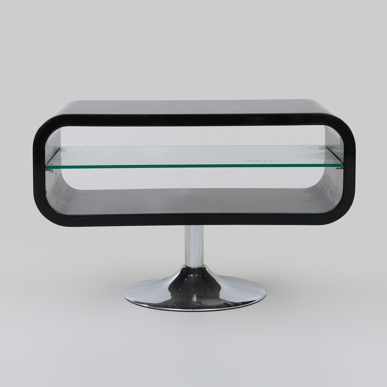 Plastic material, chrome-plated metal, glass shelf, length approx. 80 cm, width approx. 40 cm, height approx. 51 cm.