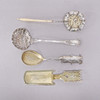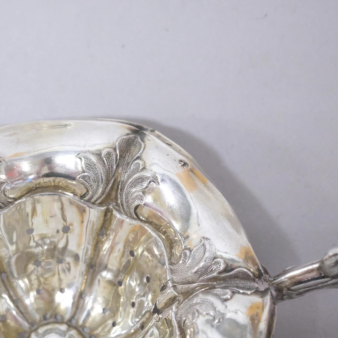 Sugar sifter with cracks. Use- and age-related wear. Engraving.
