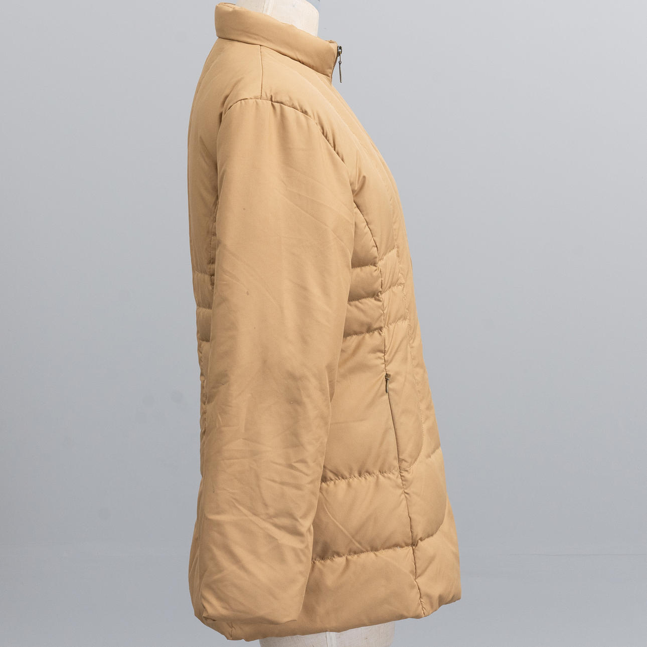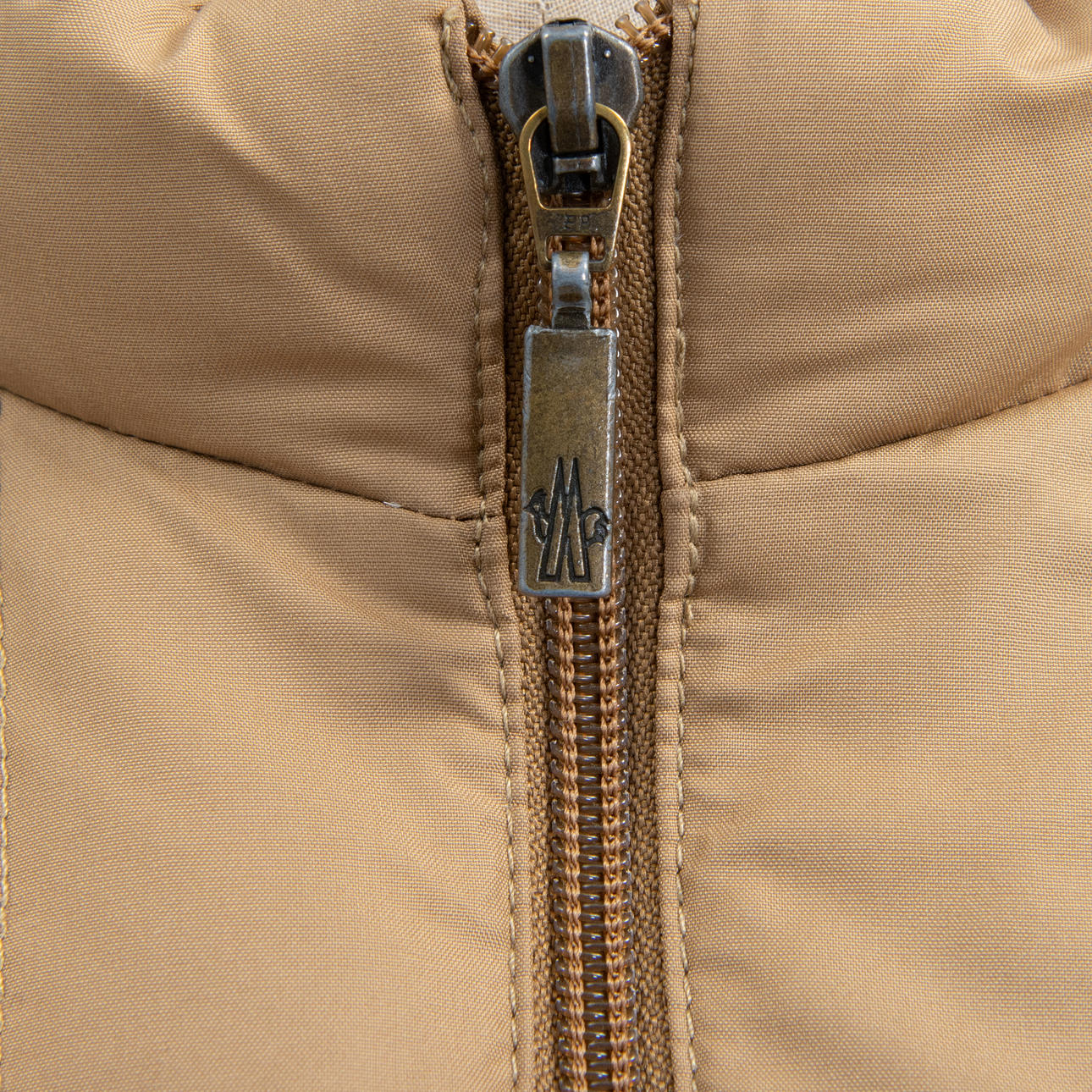 Moncler down jacket, size 2. Beige, slim fit. Two zip pockets. Stand-up collar. 100% down.