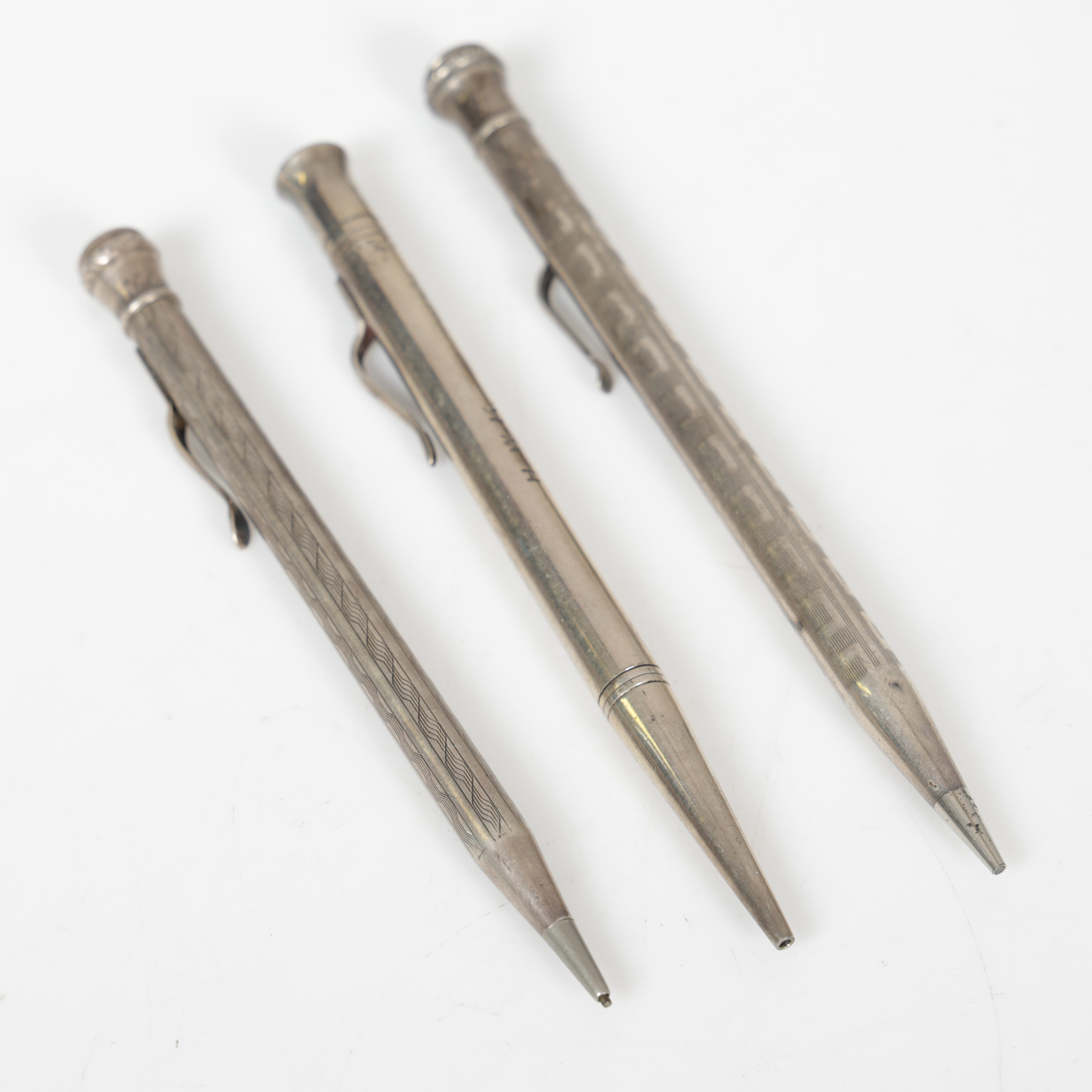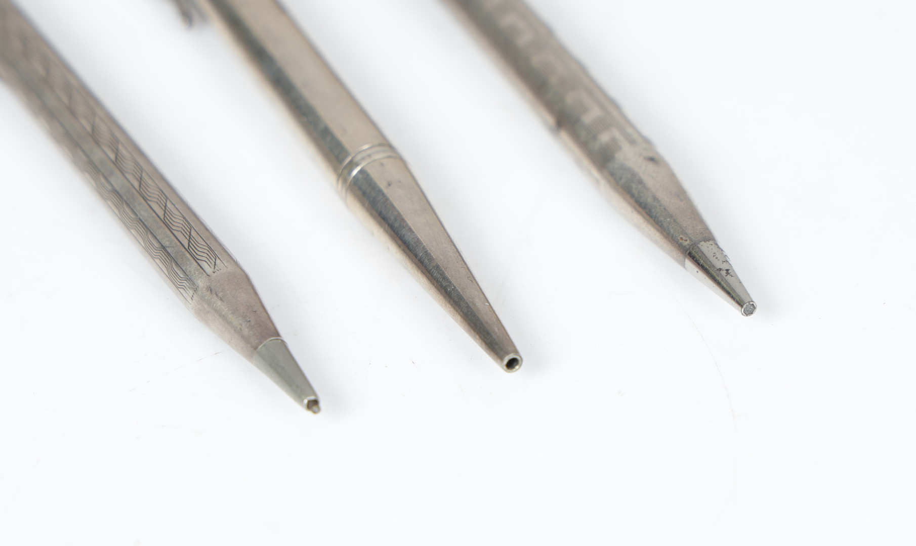 5033008. THREE SILVER PROPELLING PENCILS (3).