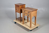 To include a mahogany pot cupboard, with engraved foliate decoration, and raised on turned supports and a lower tier. 81cm (h) x 40cm (w) x 34cm (d). Together with a small table with two drawers and raised on tapered supports. 70cm (h) x 56.5cm (w) x 38cm (d). (2).