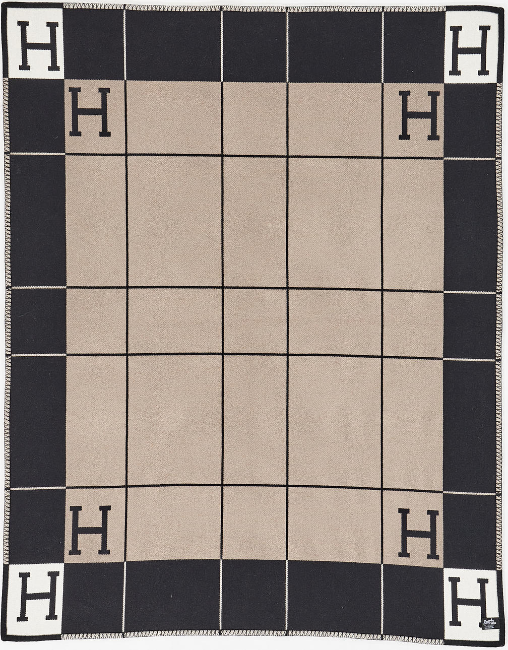Black and grey wool and cashmere blend (90+10%), approx. 170x140 cm, original box and bag included.