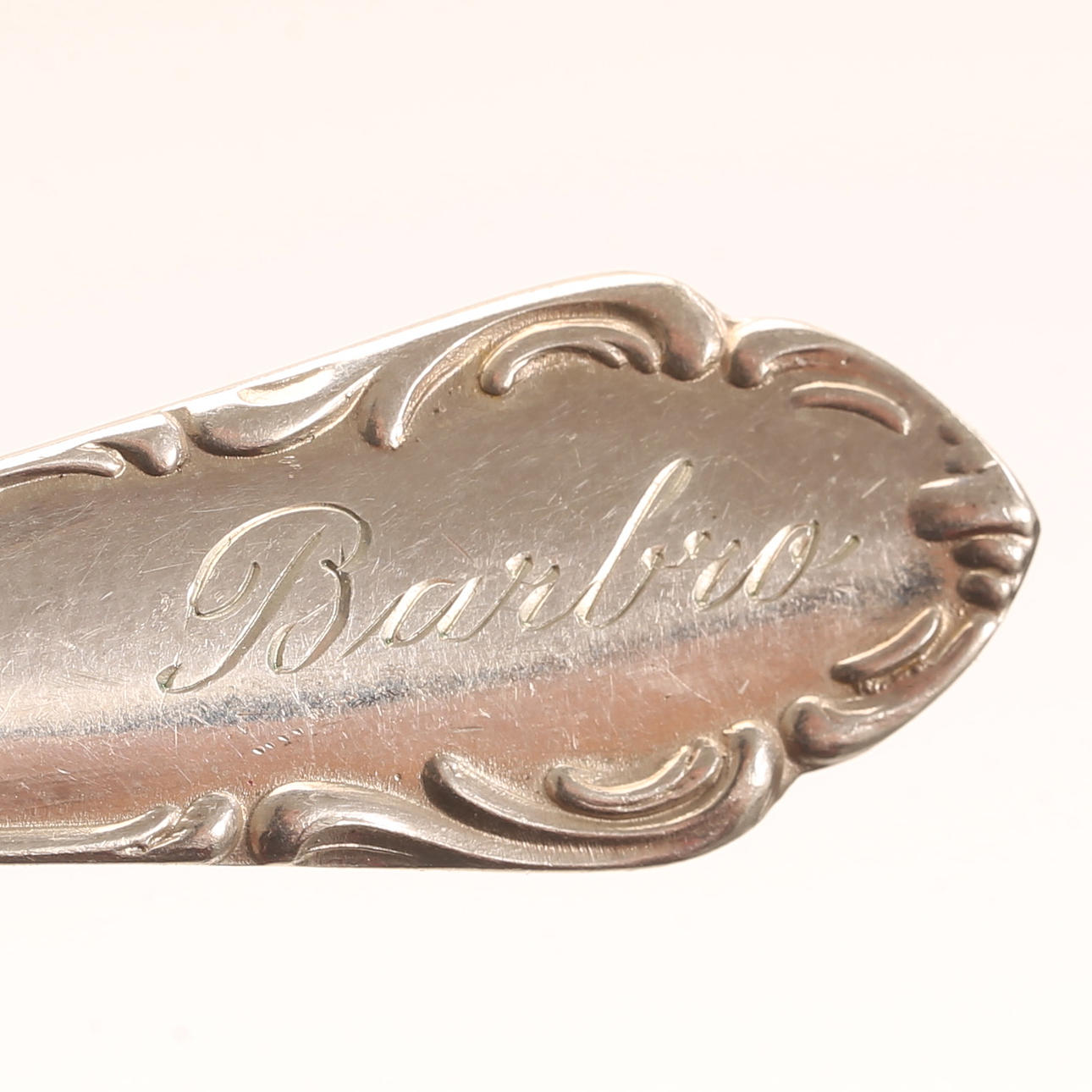 Wear from use. Coffee spoons with inscription "Barbro".