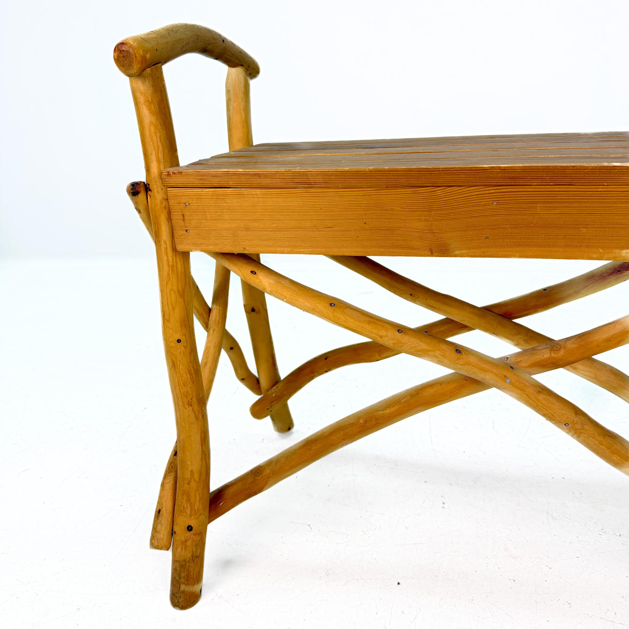 GARDEN BENCH - STOOL, wood, 20th century.