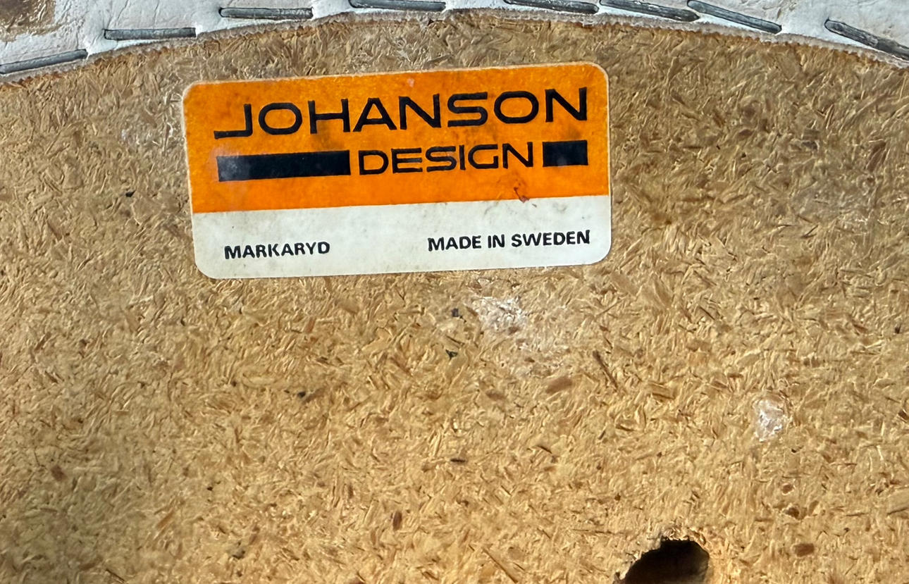 BAR STOOL with footrest, chrome, leather, marked Johanson Design.
