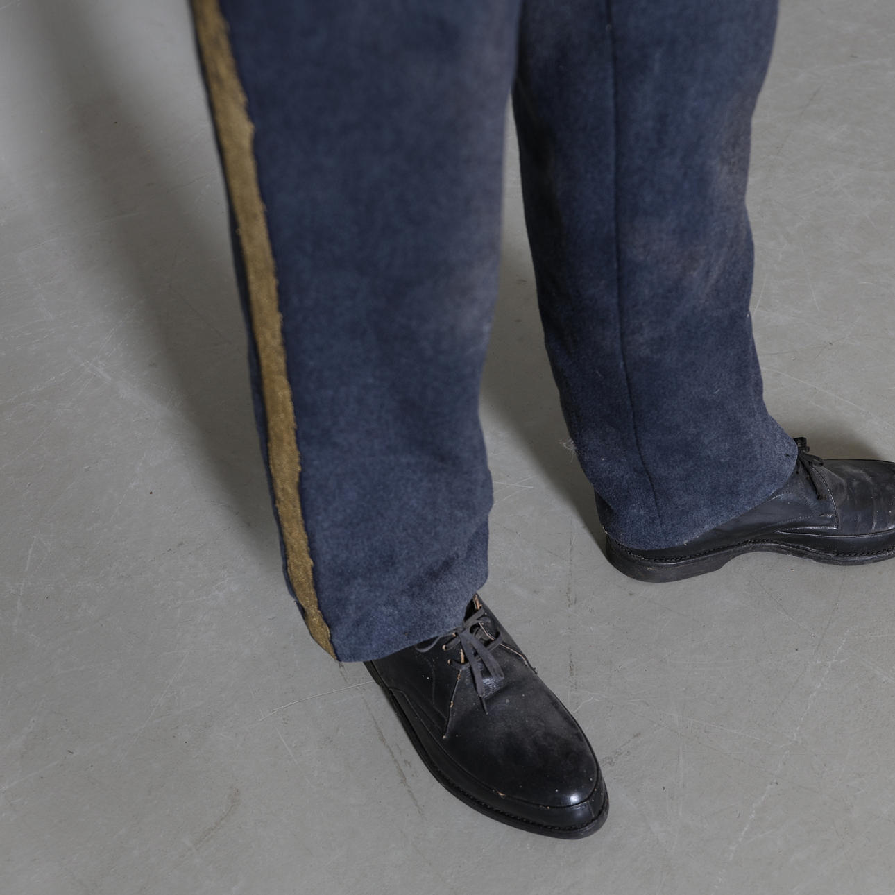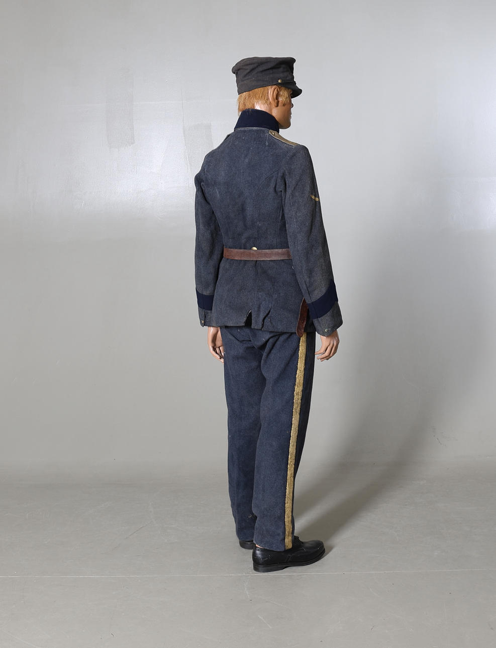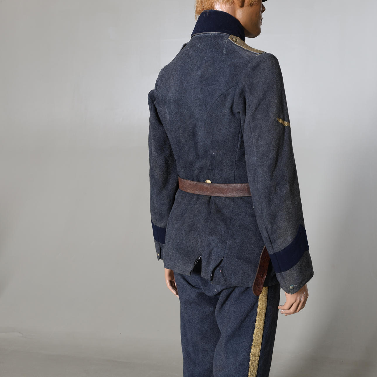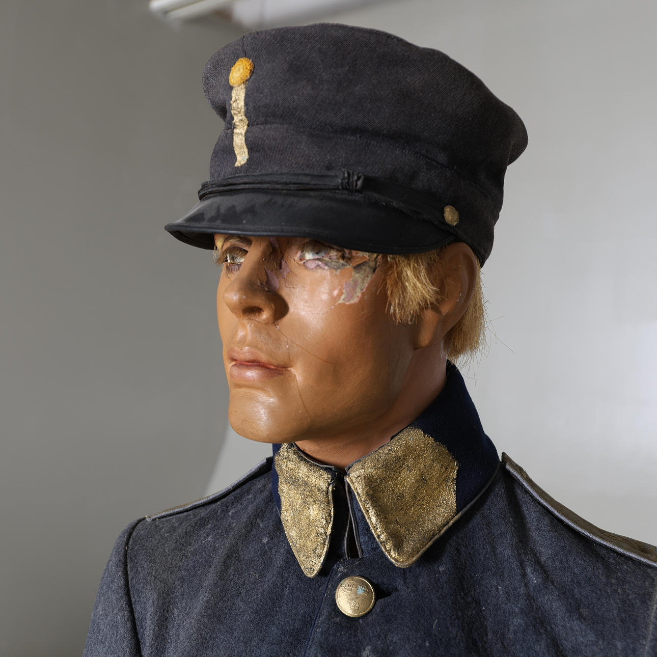 Wear from use. Scratches and stains. Later additions/repainting to uniform. Some losses to mannequin.
