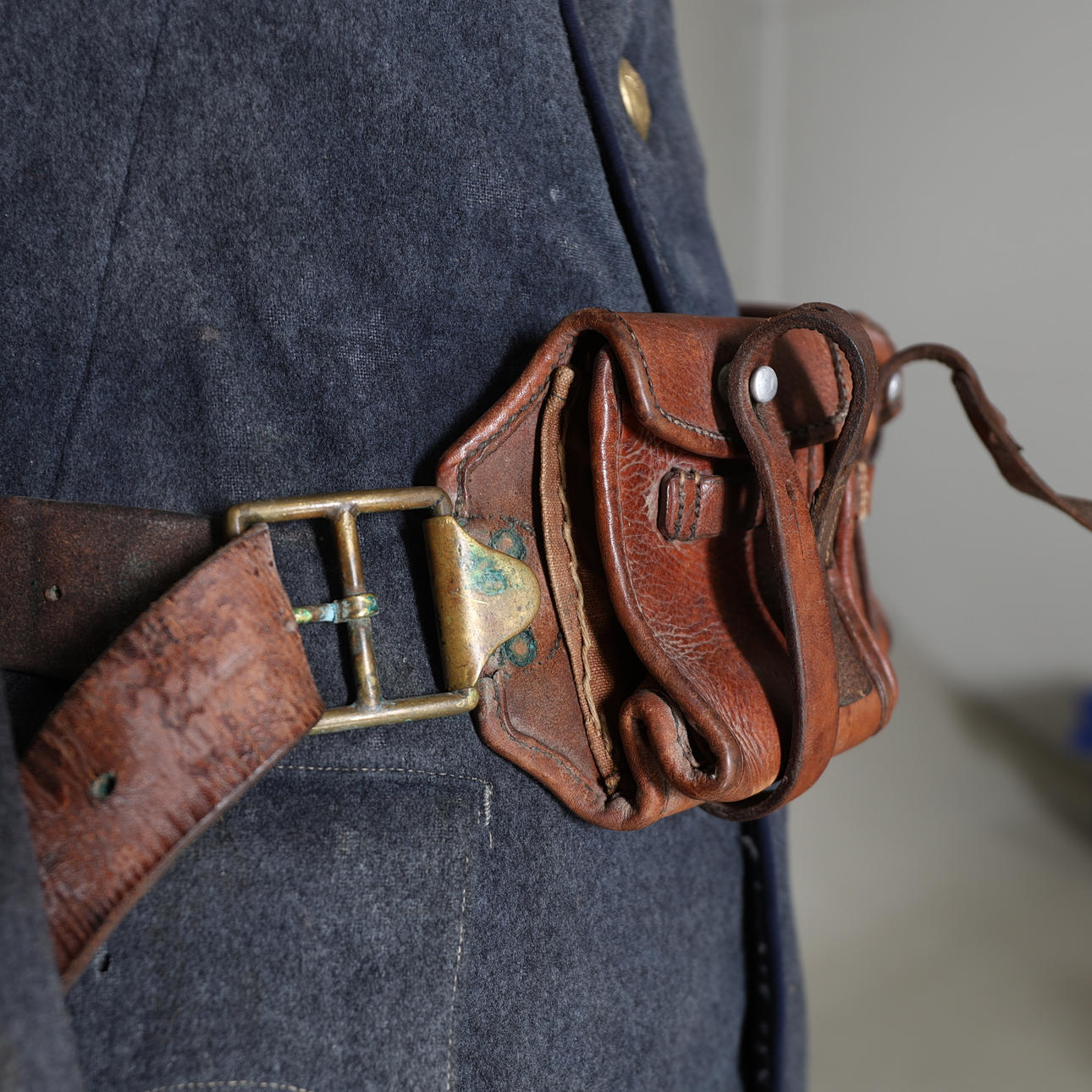 Dressed in uniform m/1906 or m/1910 and cartridge belt.