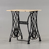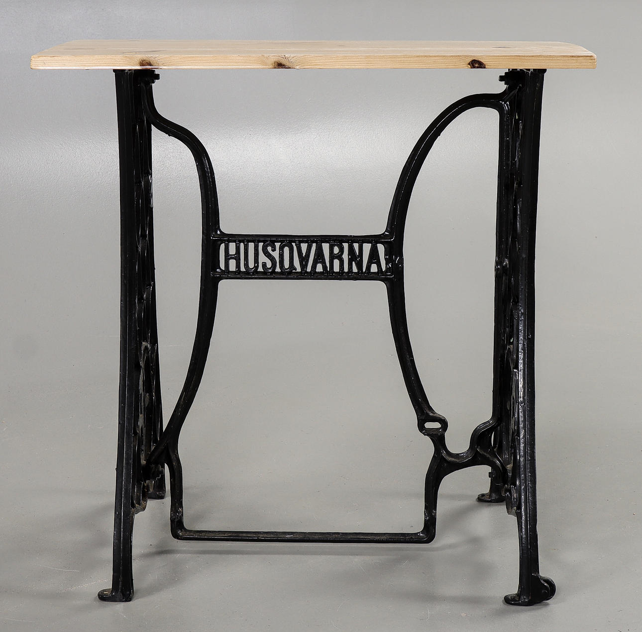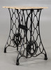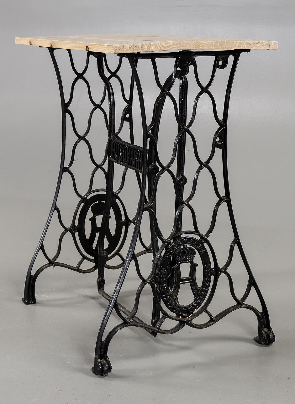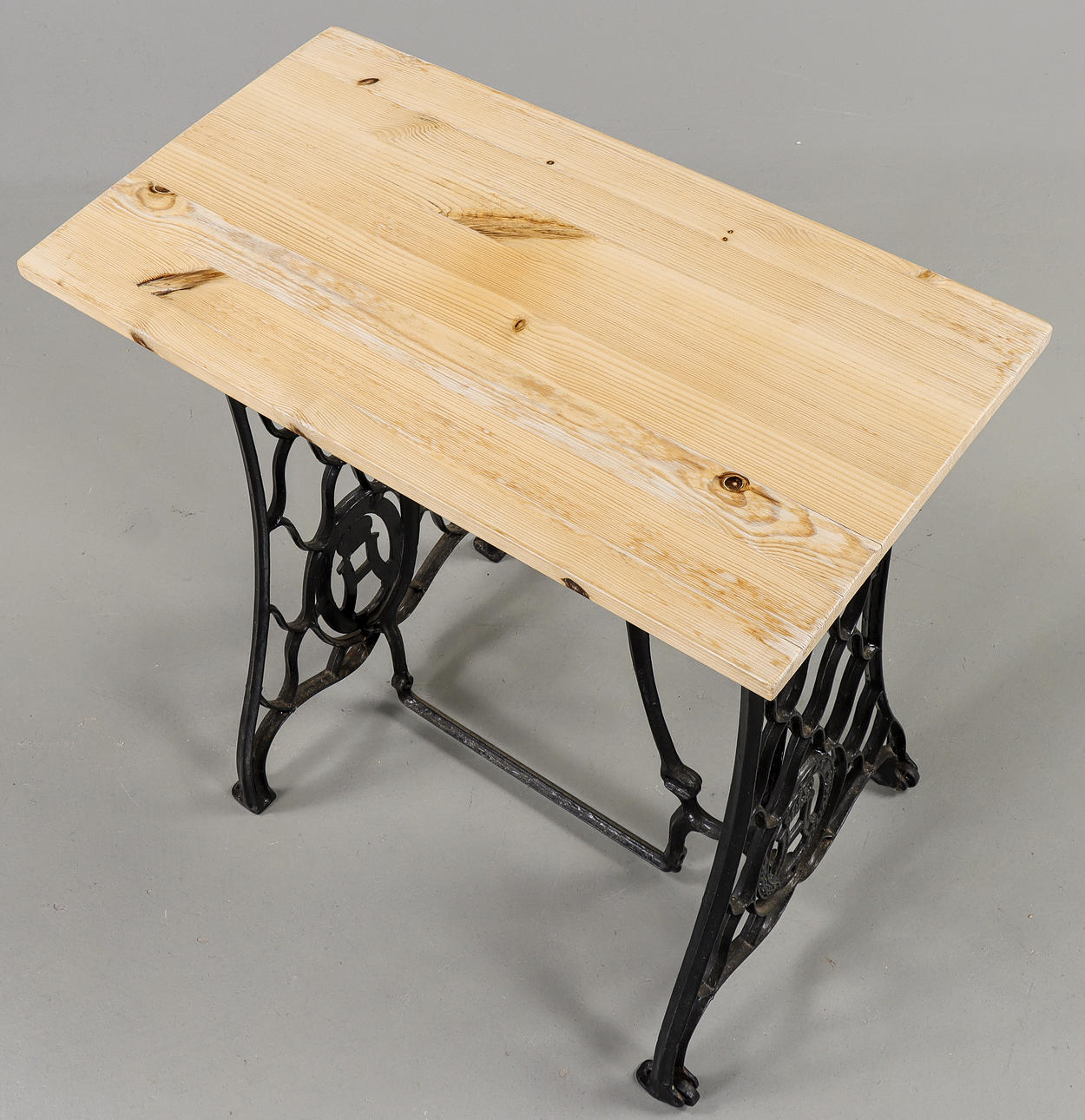 Loose wooden top, base in black-painted cast iron.