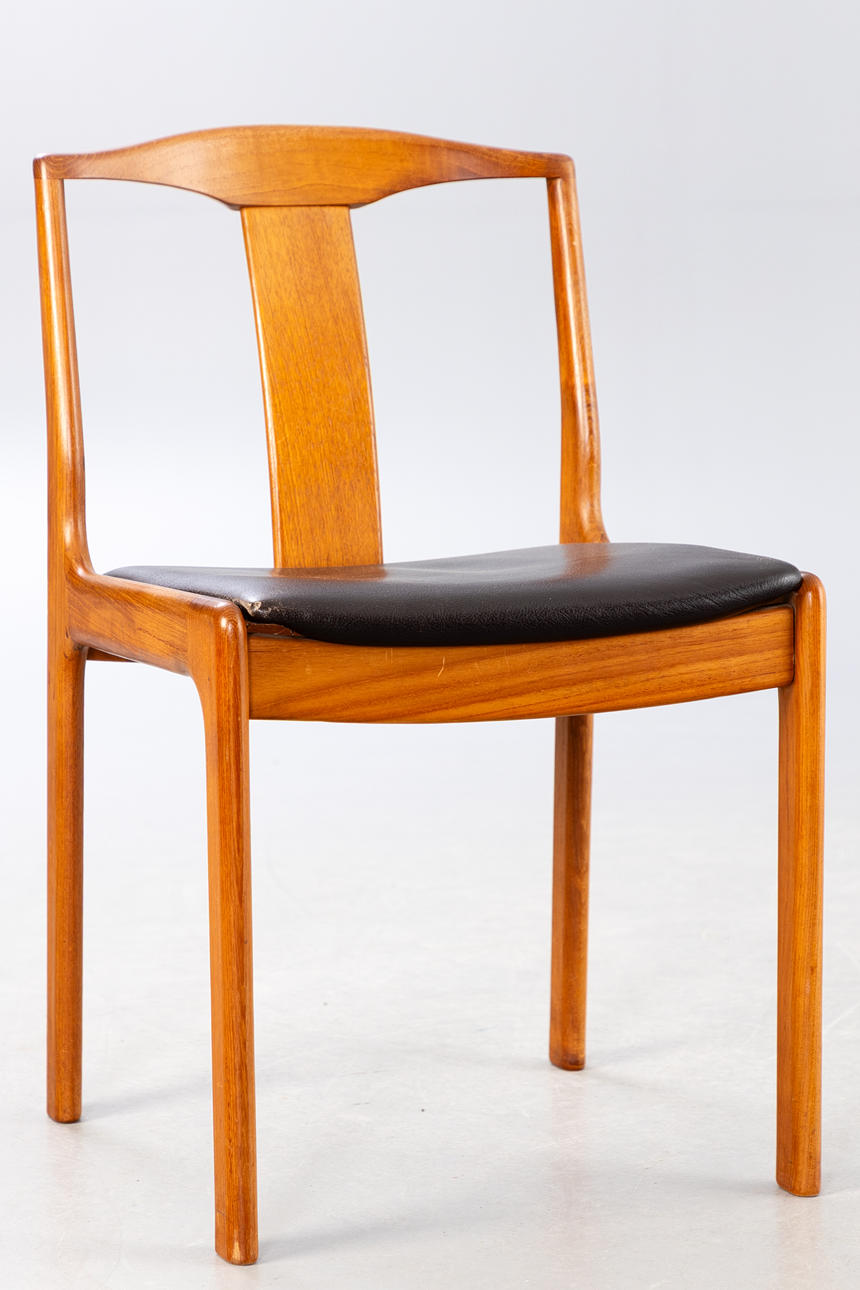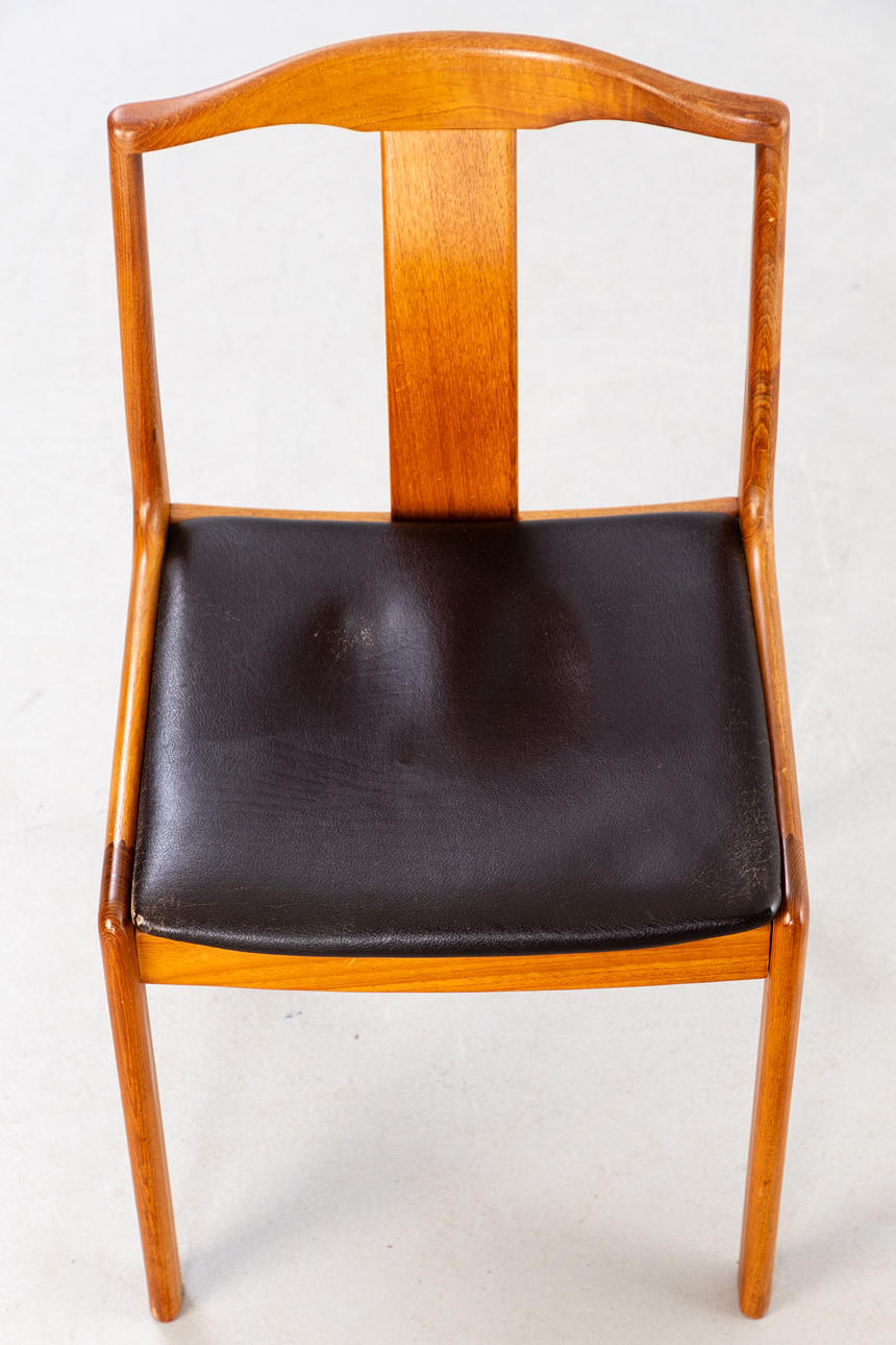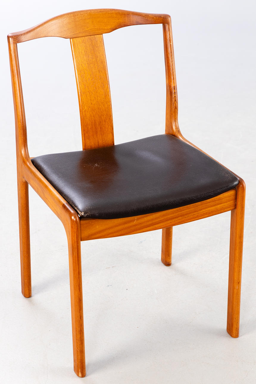 Teak, seat with brown faux leather. approx. H. 79 cm x SH. 45 cm.
