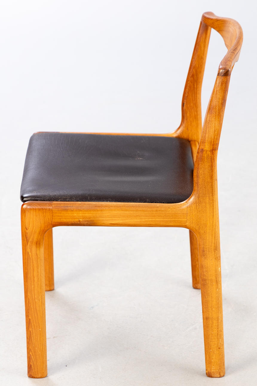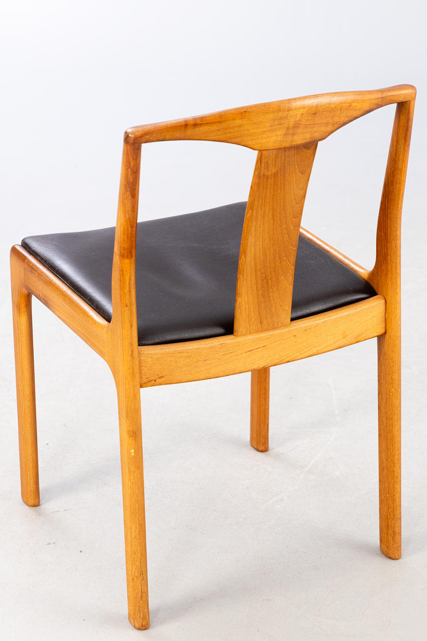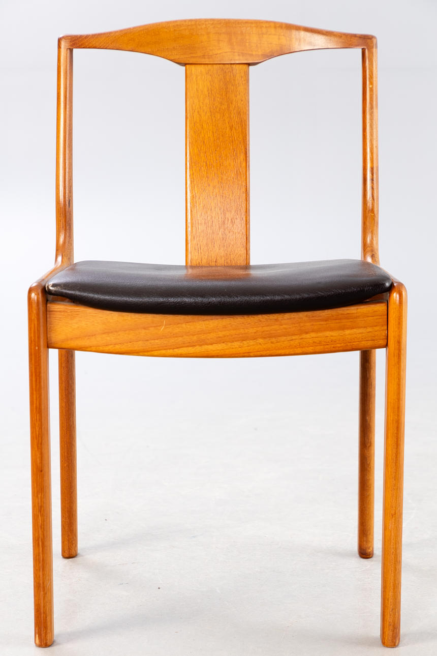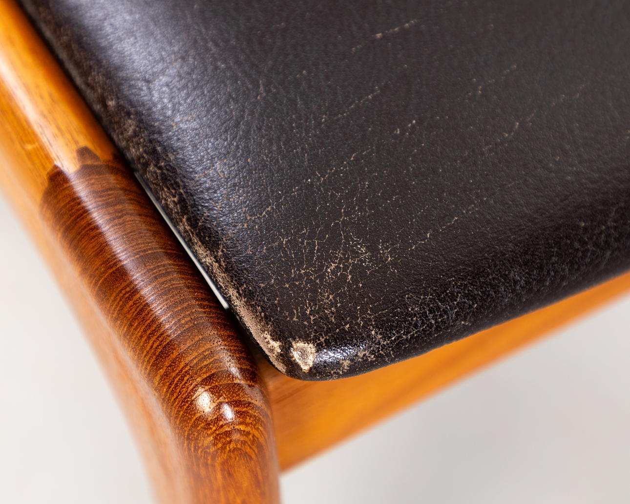 Teak, seat with brown faux leather. approx. H. 79 cm x SH. 45 cm.