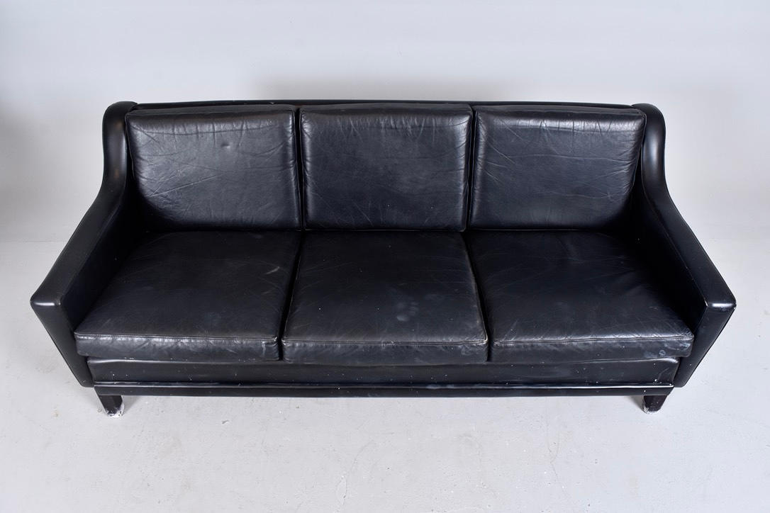 Legs with stains. Fabric under the cushions with minor holes and wear. Back with scattered stains.