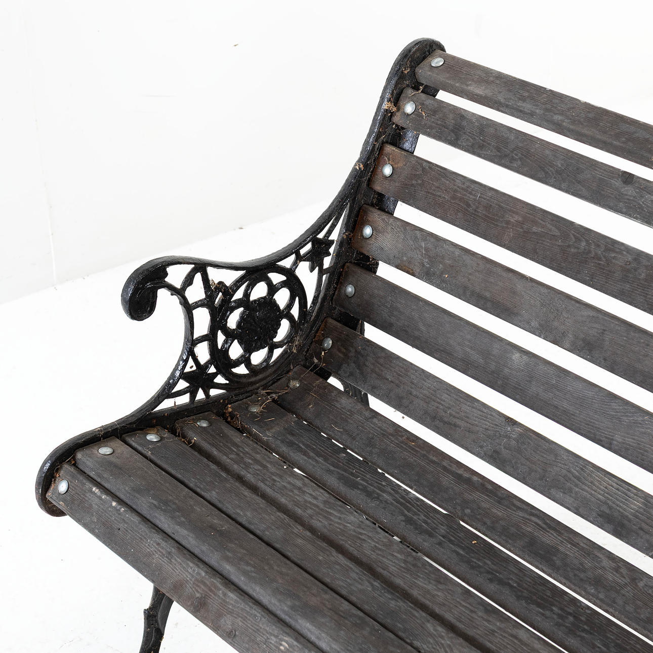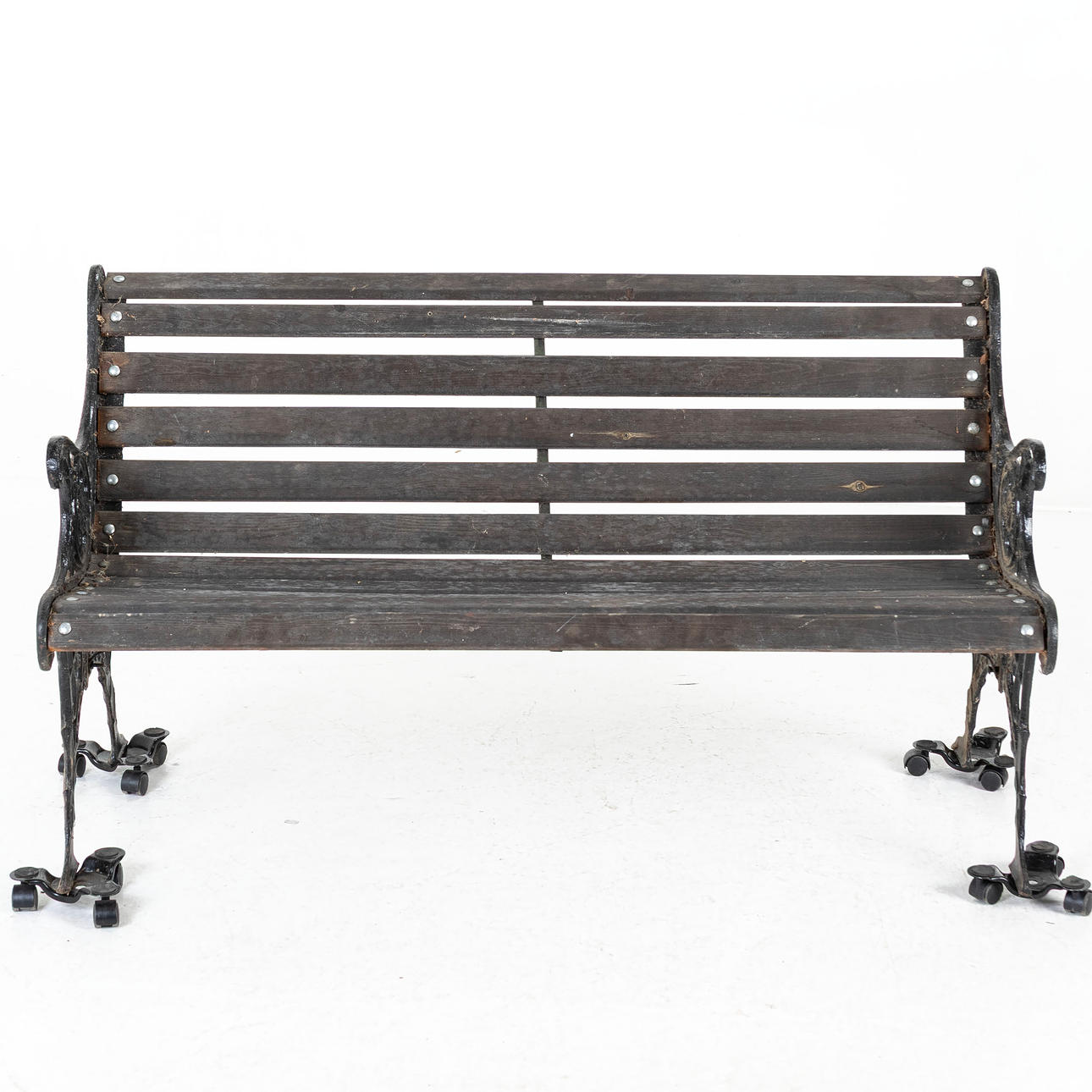 GARDEN BENCH, blackened ends.