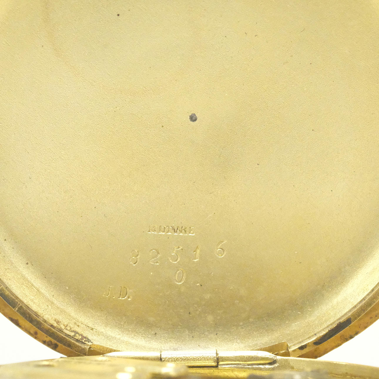 Case back with engraving and small dents. Glass and case with minor surface scratches. Not working, no functional guarantee provided.
