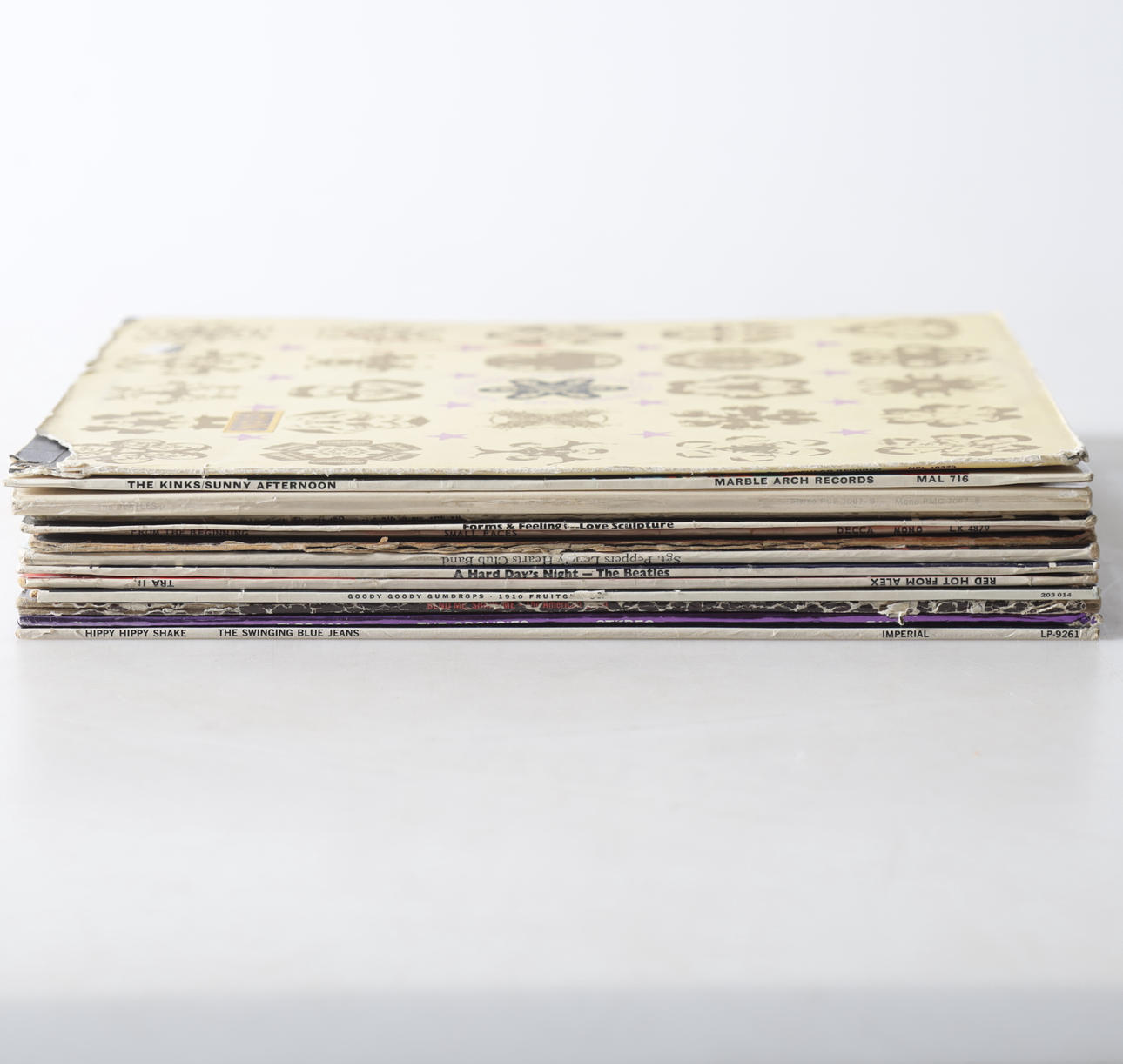 Some wear to sleeves. Good condition on checked records. Some records with owner's name.