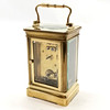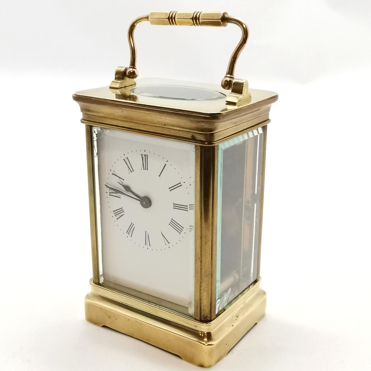 Antique brass carriage clock - total height (with handle) 15.5cm.