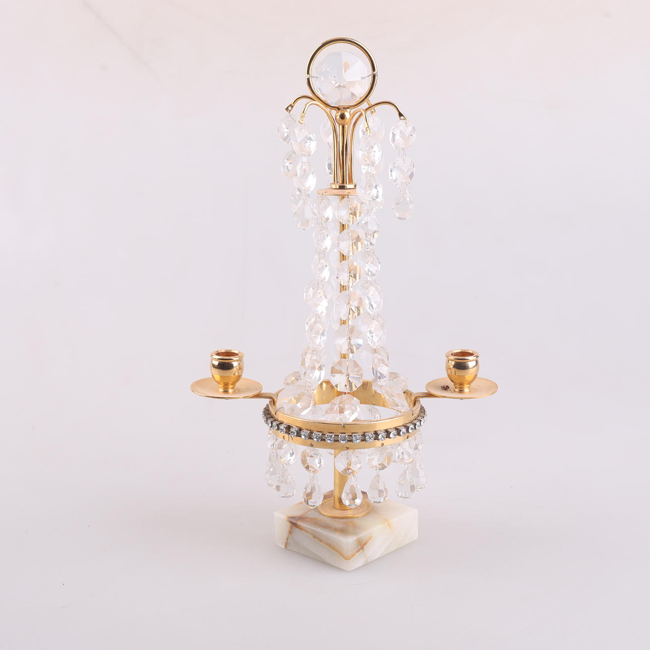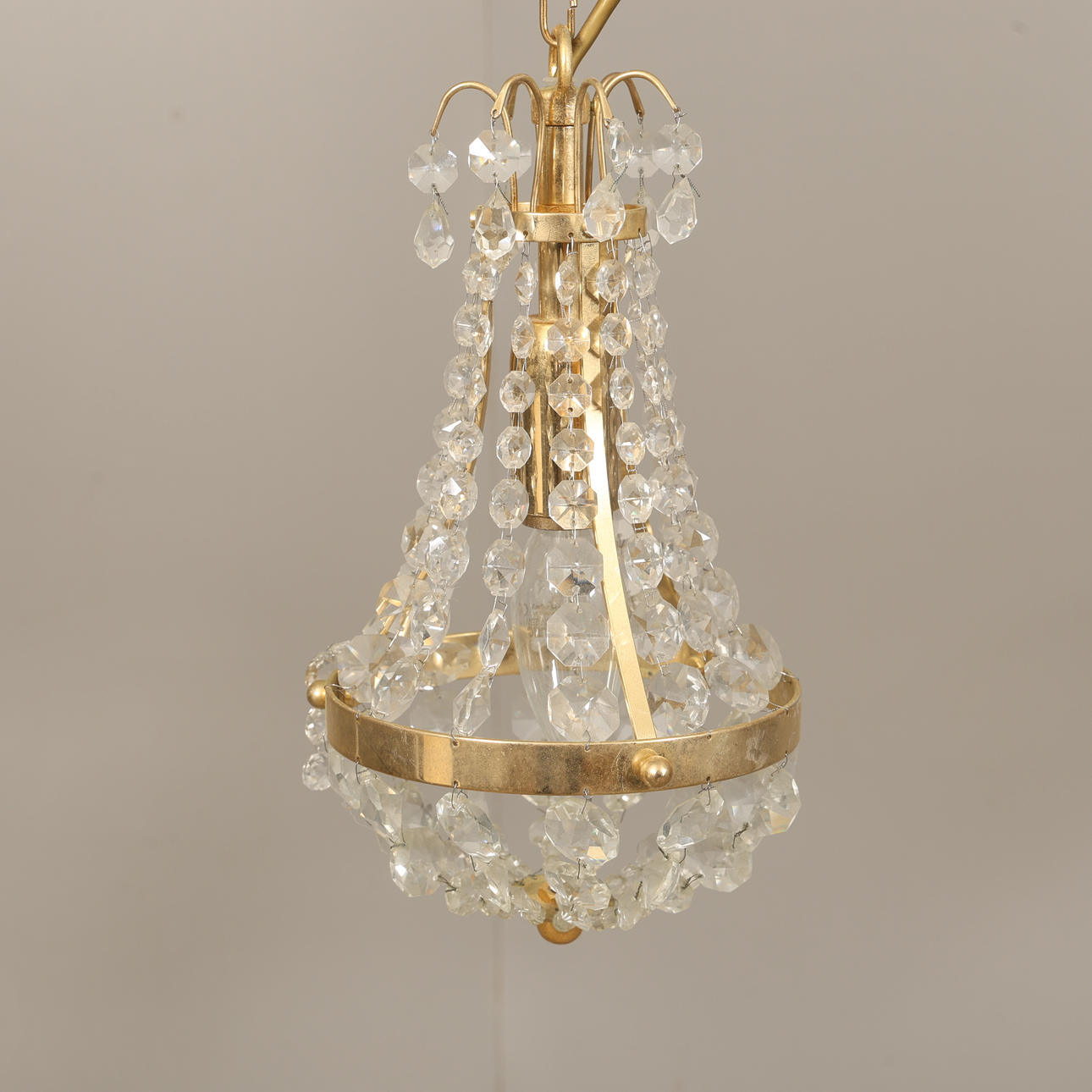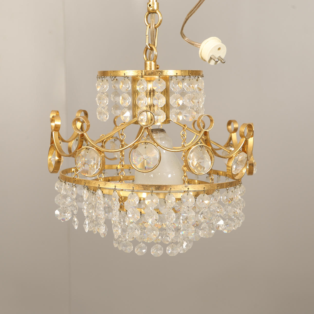 Ceiling lamp with prisms H 40 ø 24 cm Window lamp 10 cm Window lamp 27 cm Candlestick 25 cm 2 wall sconces 24 cm.