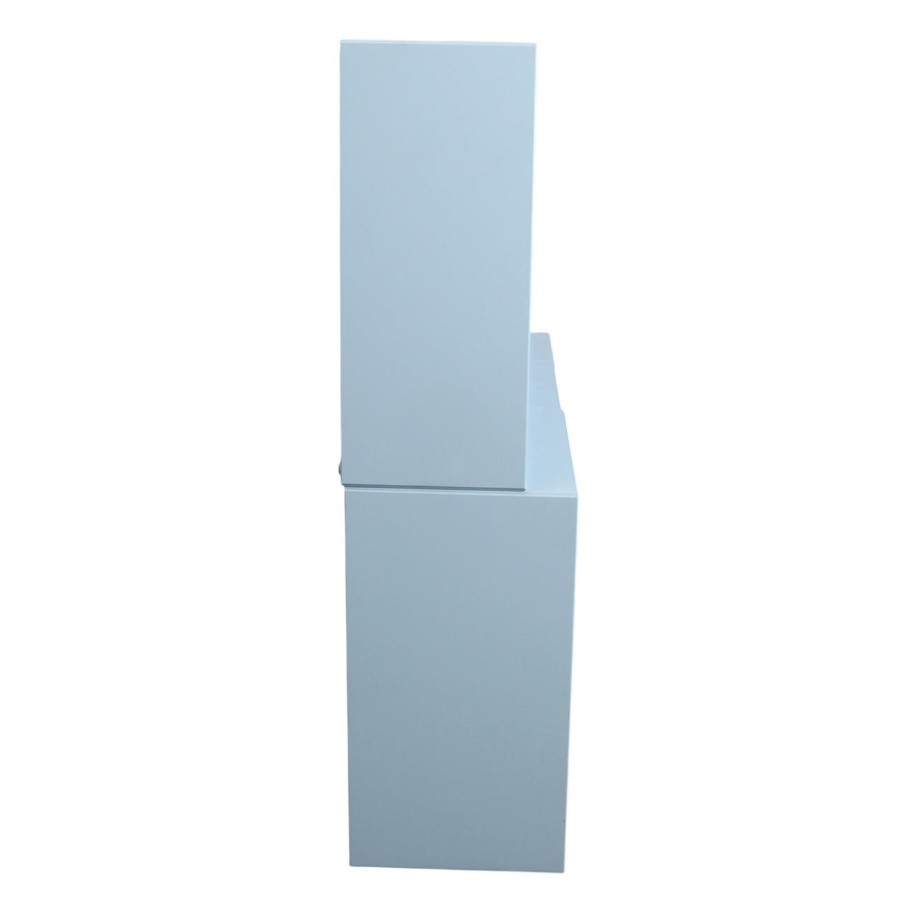 Good condition, a few small scratches. Open shelving units fitted with mounting rails on the back, but missing the wall-mounted rail. Cabinets completely without mounting rails.