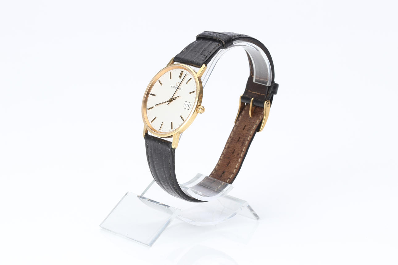 Light dial with date. Protective sticker remains on the case back. Approx. 33 mm.