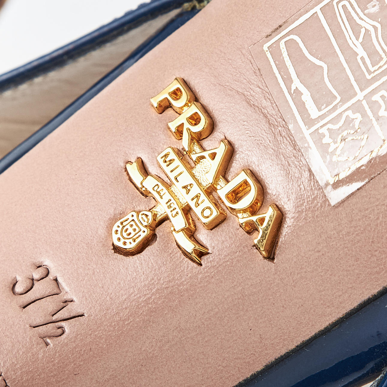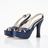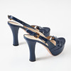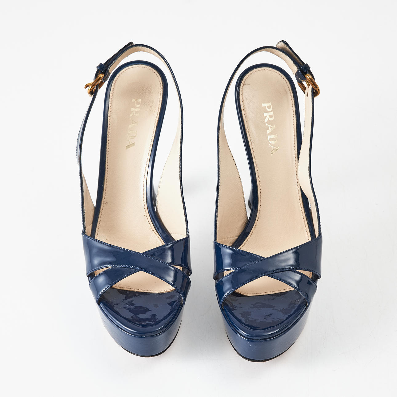 Blue patent leather, slingbacks with buckle, leather sole, marked "Prada made in Italy", size 37 1/2, heel height 10-12 cm.