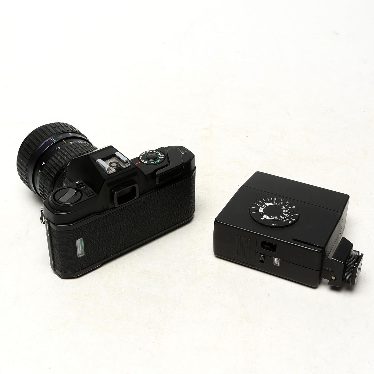 CAMERA, Pentax, with flash and lens.