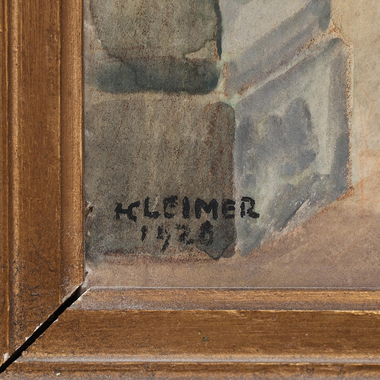 Watercolour on paper, mounted on panel, signed and dated 1928, approx. 37x26 cm. Frame dimensions approx. 48x38 cm.