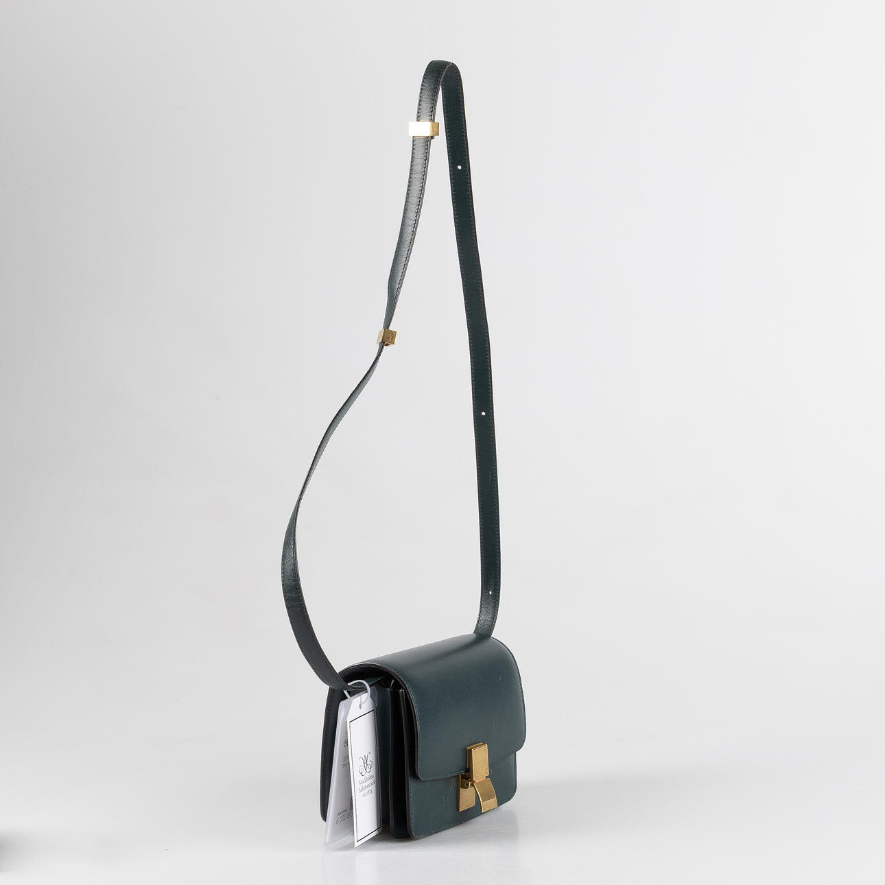in green leather with plated metal clasp. Marked CÉLINE PARIS, made in Italy and serial number embossed in the bag's interior zippered compartment.