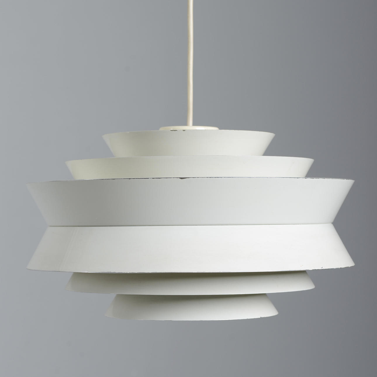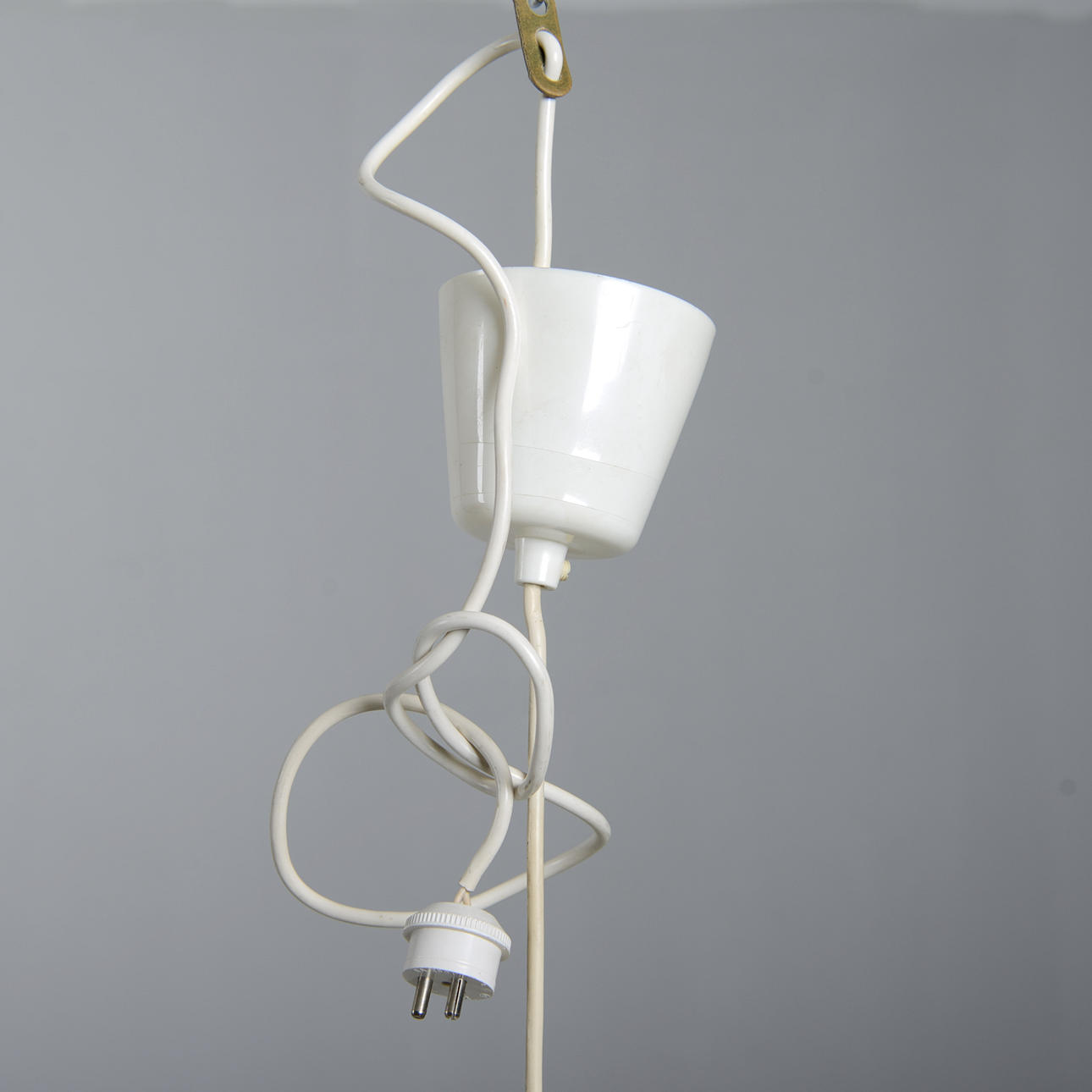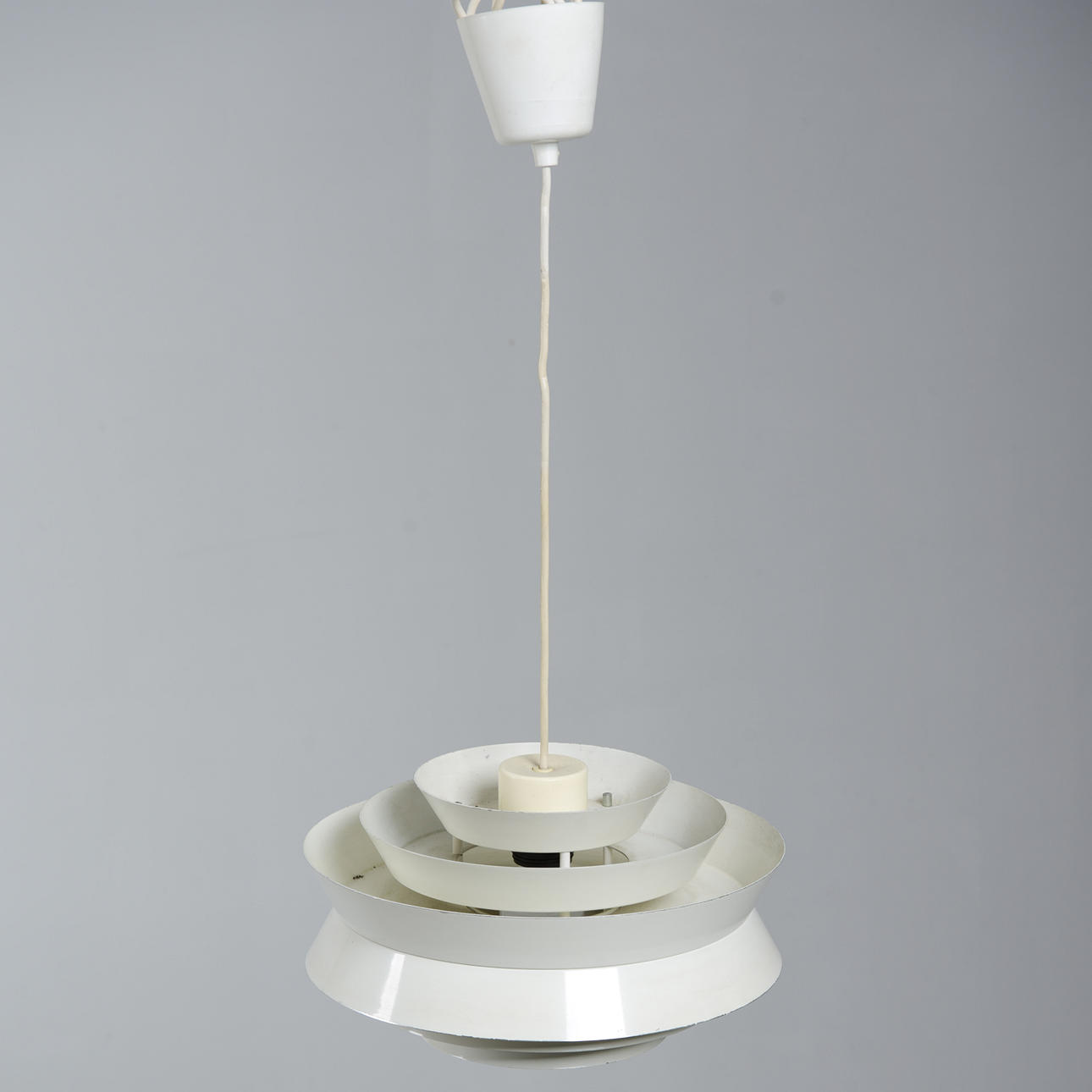 White lacquered. Diameter 35 cm. Height, excluding cord 20 cm.