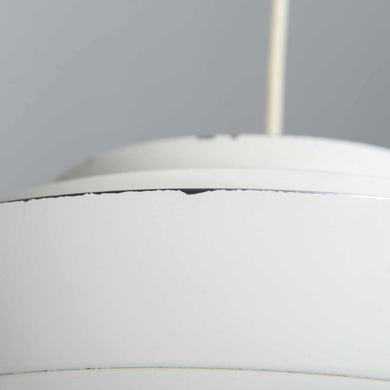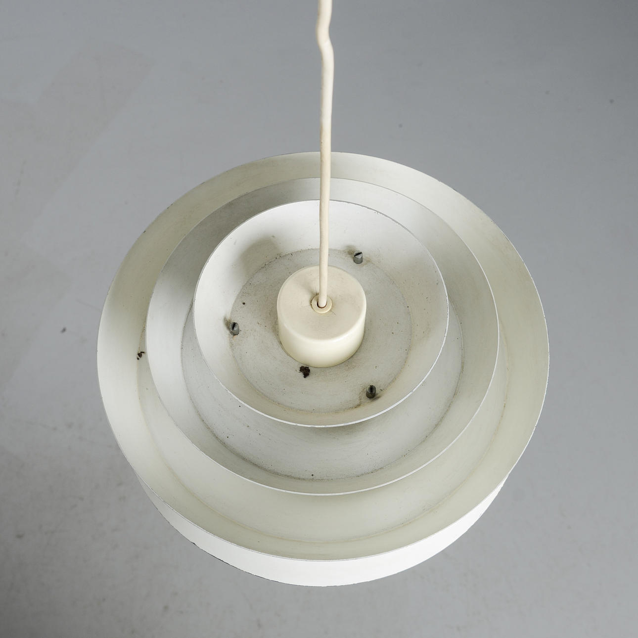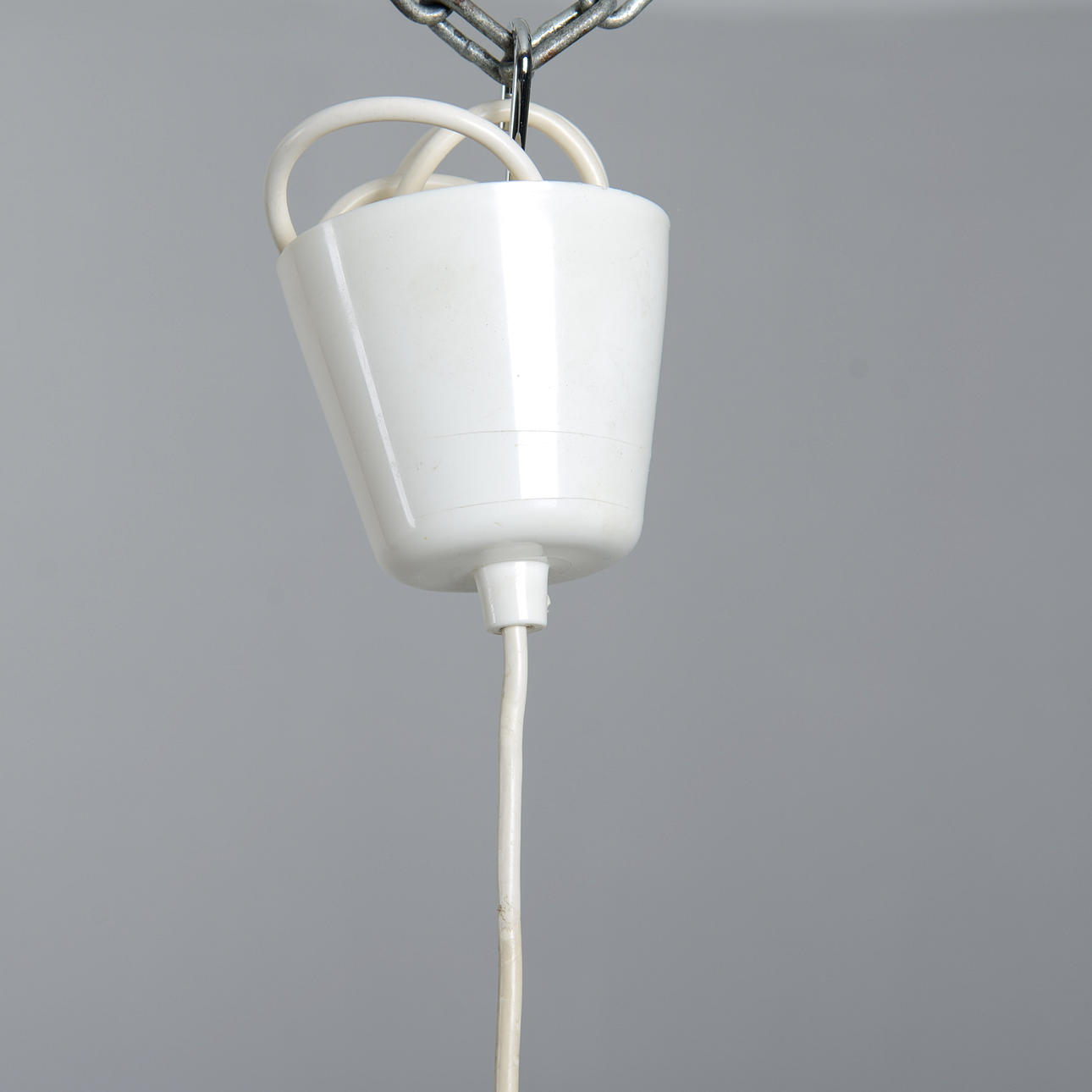 White lacquered. Diameter 35 cm. Height, excluding cord 20 cm.
