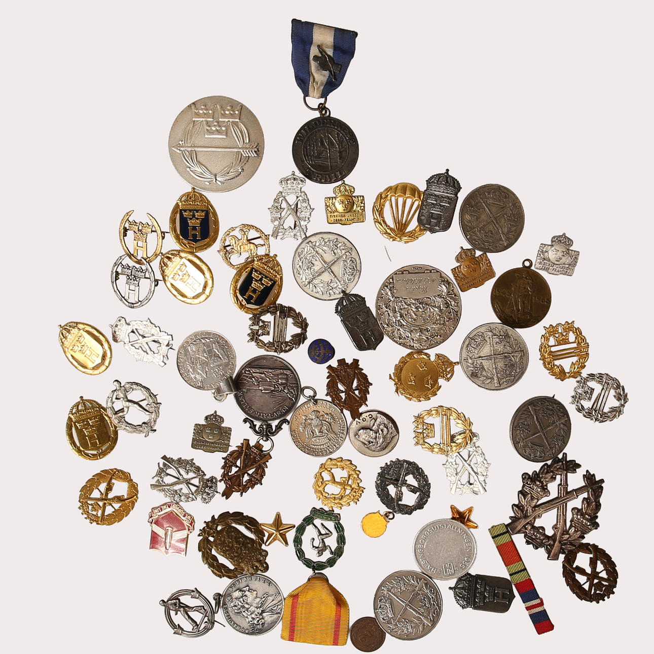 Assorted Swedish medals, lapel pins in various metals.