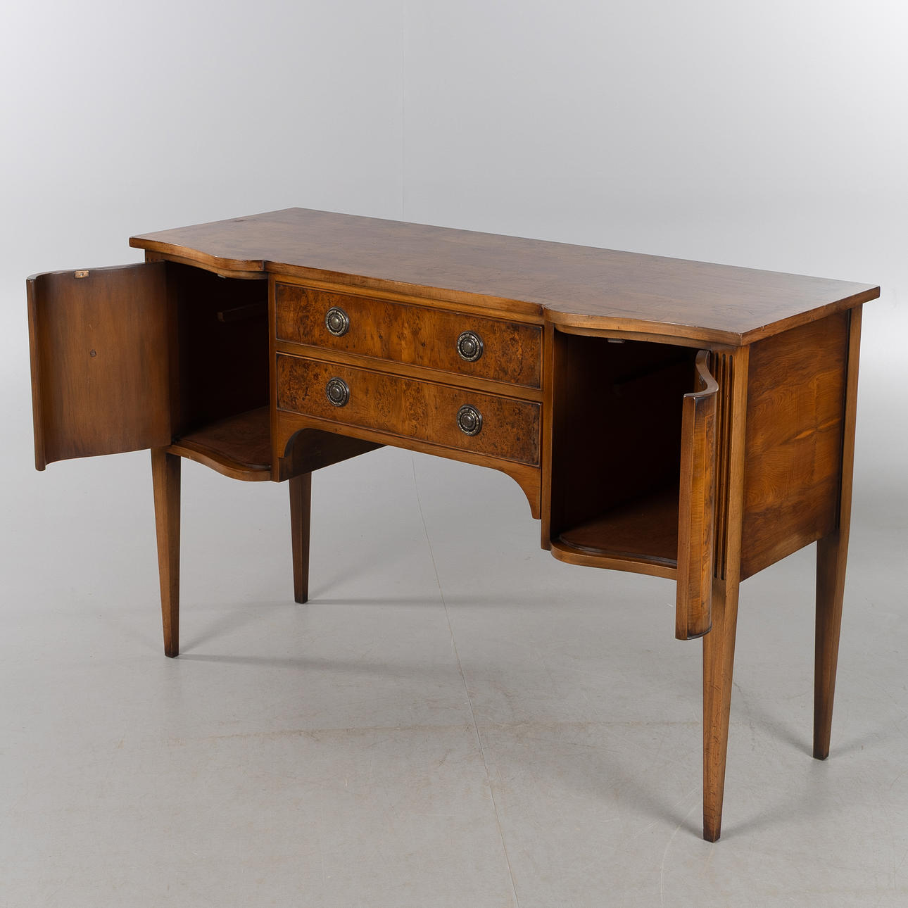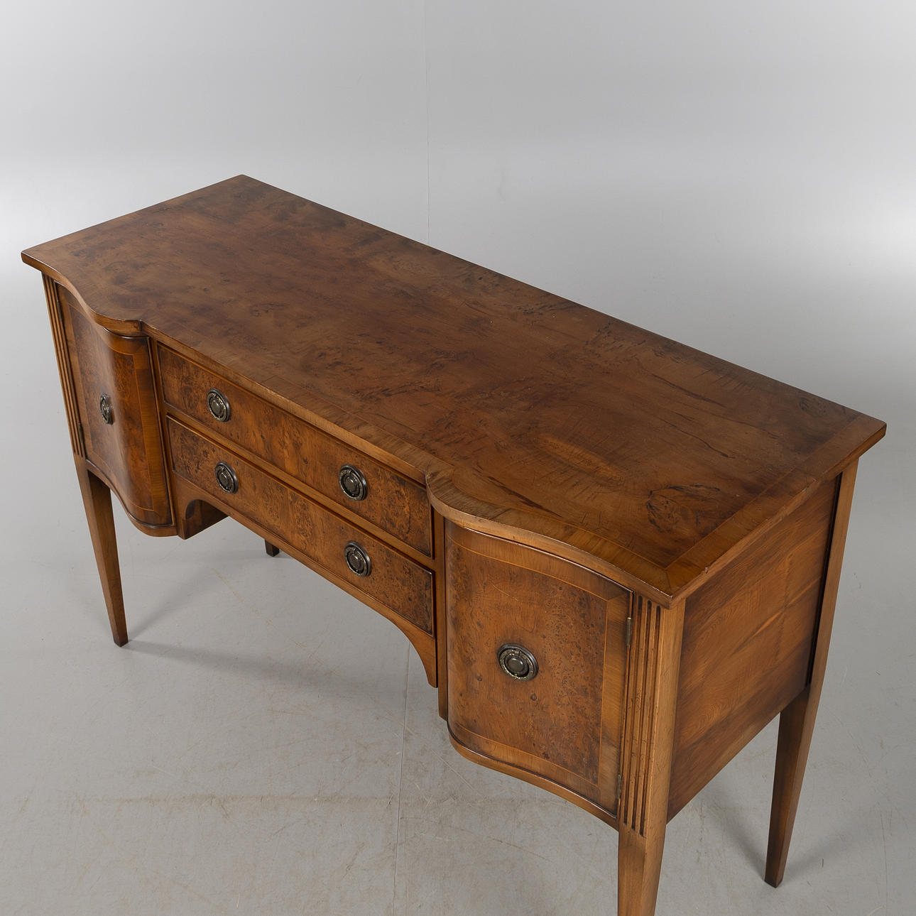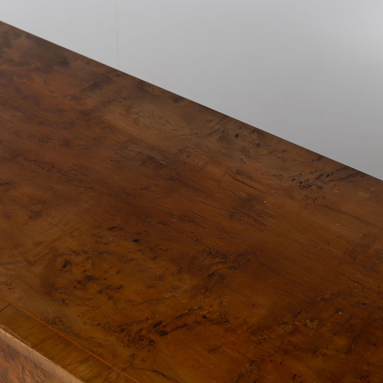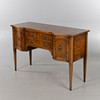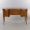 Veneered in mahogany and other woods, 2 drawers, height approx. 84, 130 x 50 cm.