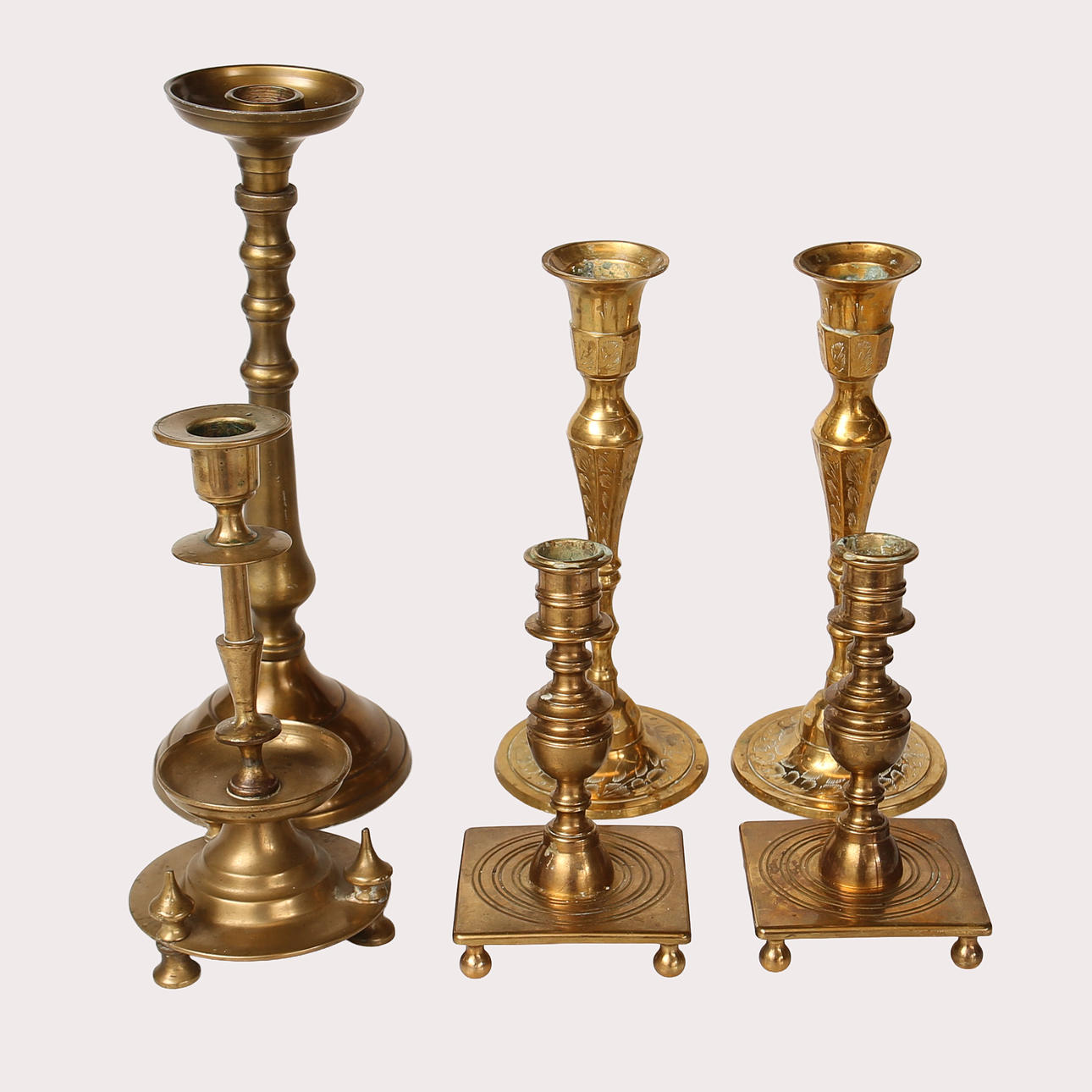 ASSORTED BRASS CANDLESTICKS, 20th century, 6 pcs.